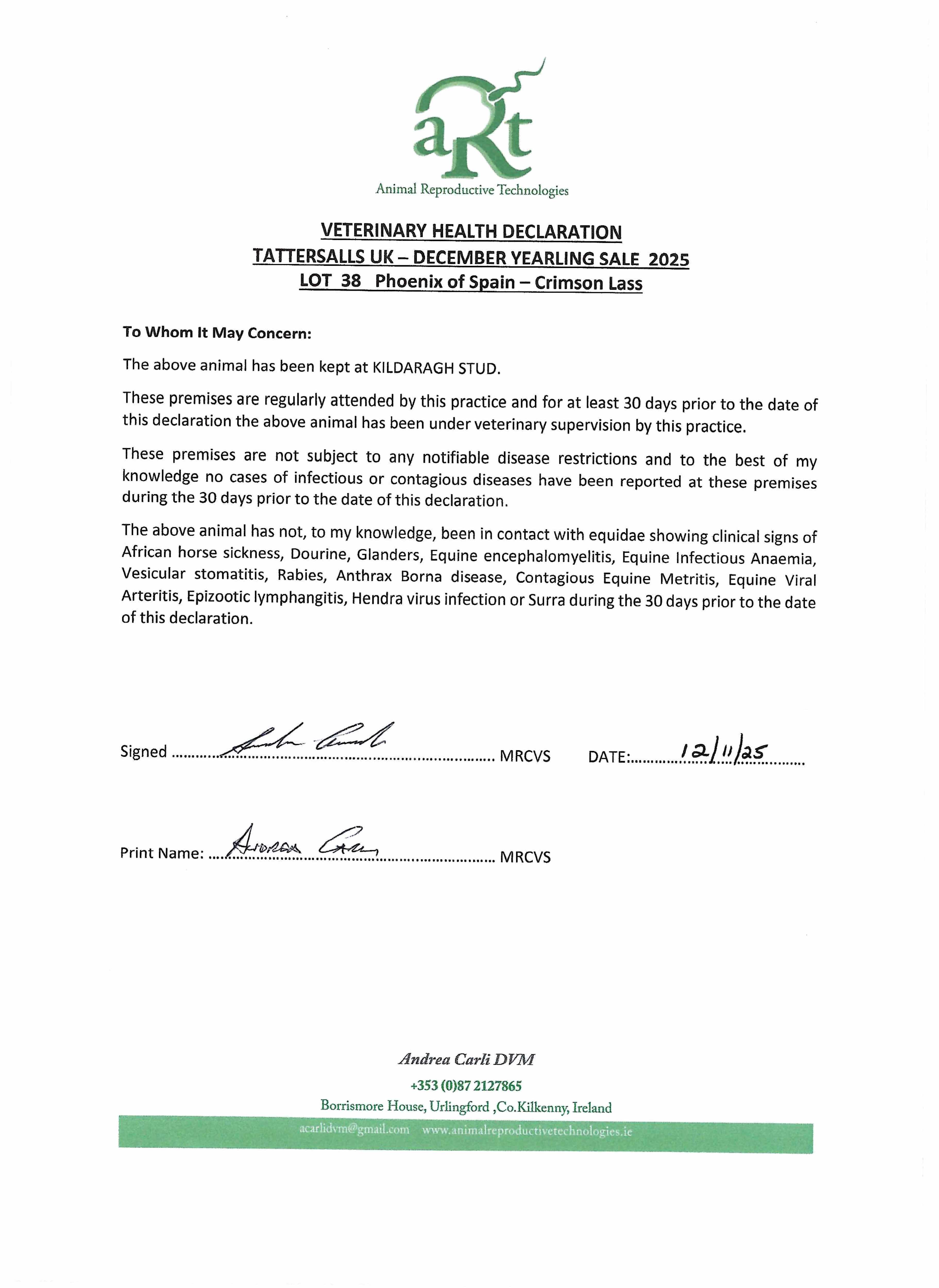 Consignor: Kildaragh Stud, Ireland