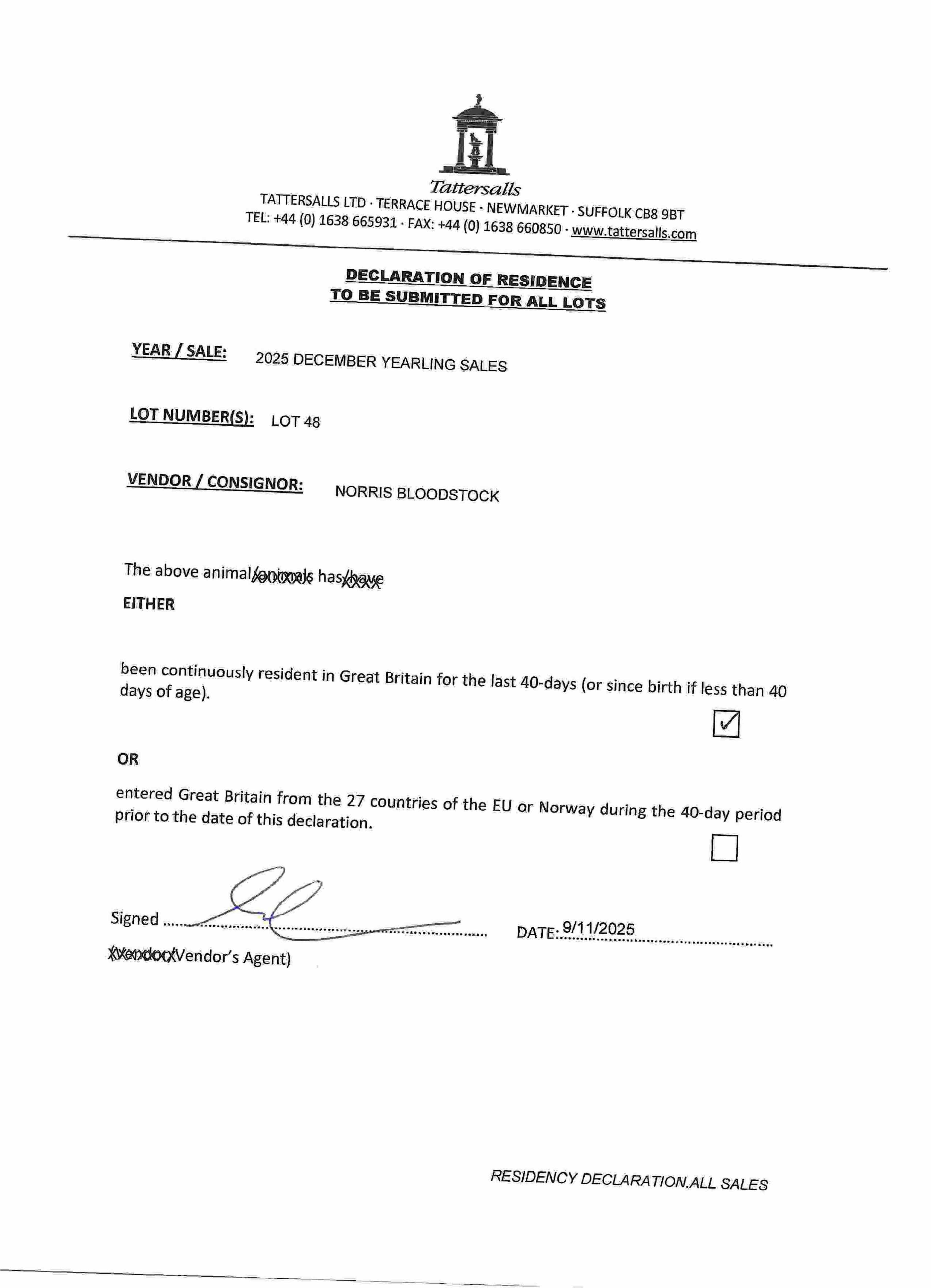 Consignor: Norris Bloodstock
