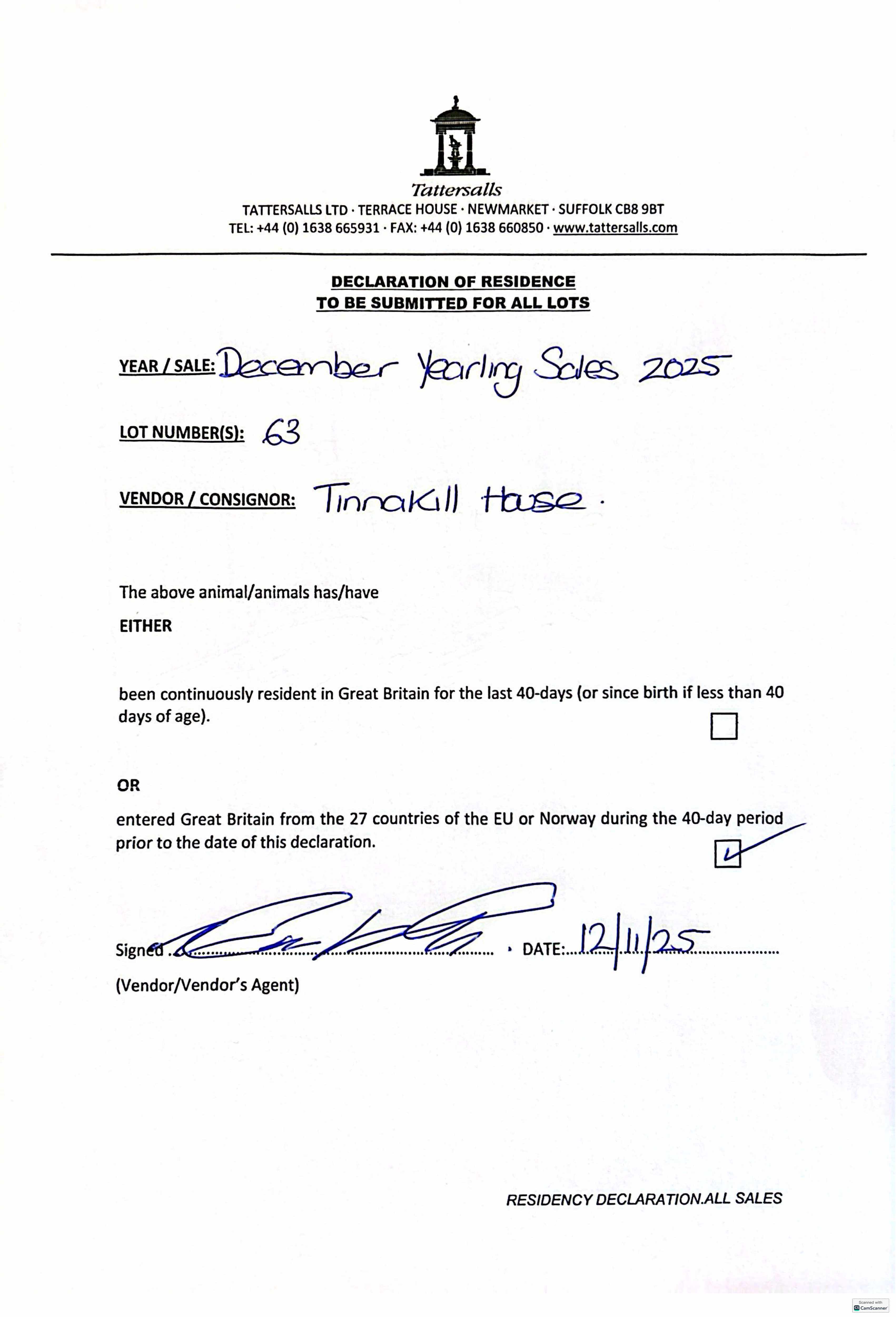December Foal Sale 2020 lot 860 F. by Churchill (IRE) 2020, Tinnakill House, Ireland=>Vendor 25,000 gns