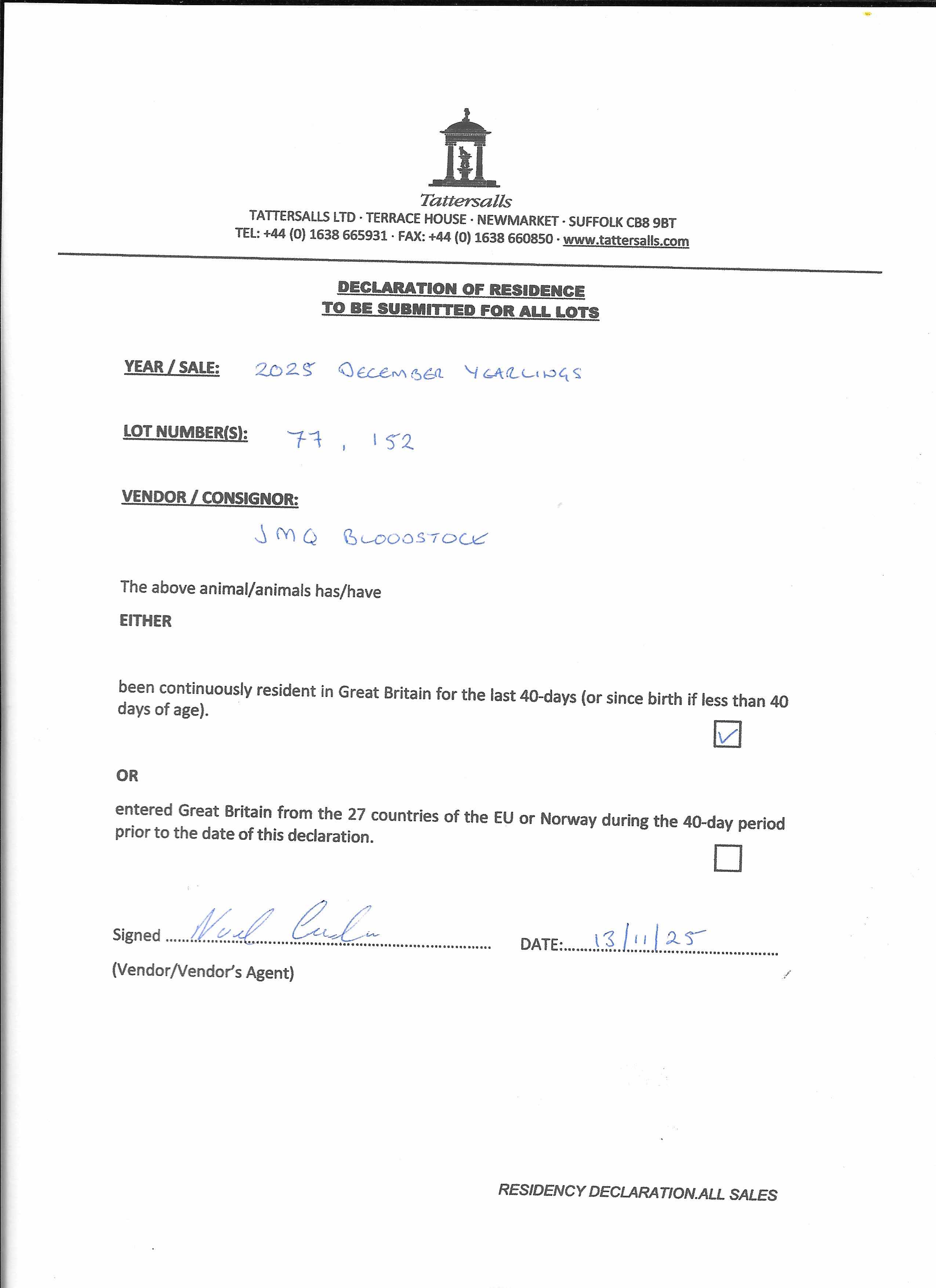 December Foal Sale 2025 lot 359 F. 2025, Whatton Manor Stud=>Stroud Coleman Bloodstock 14,000 gns