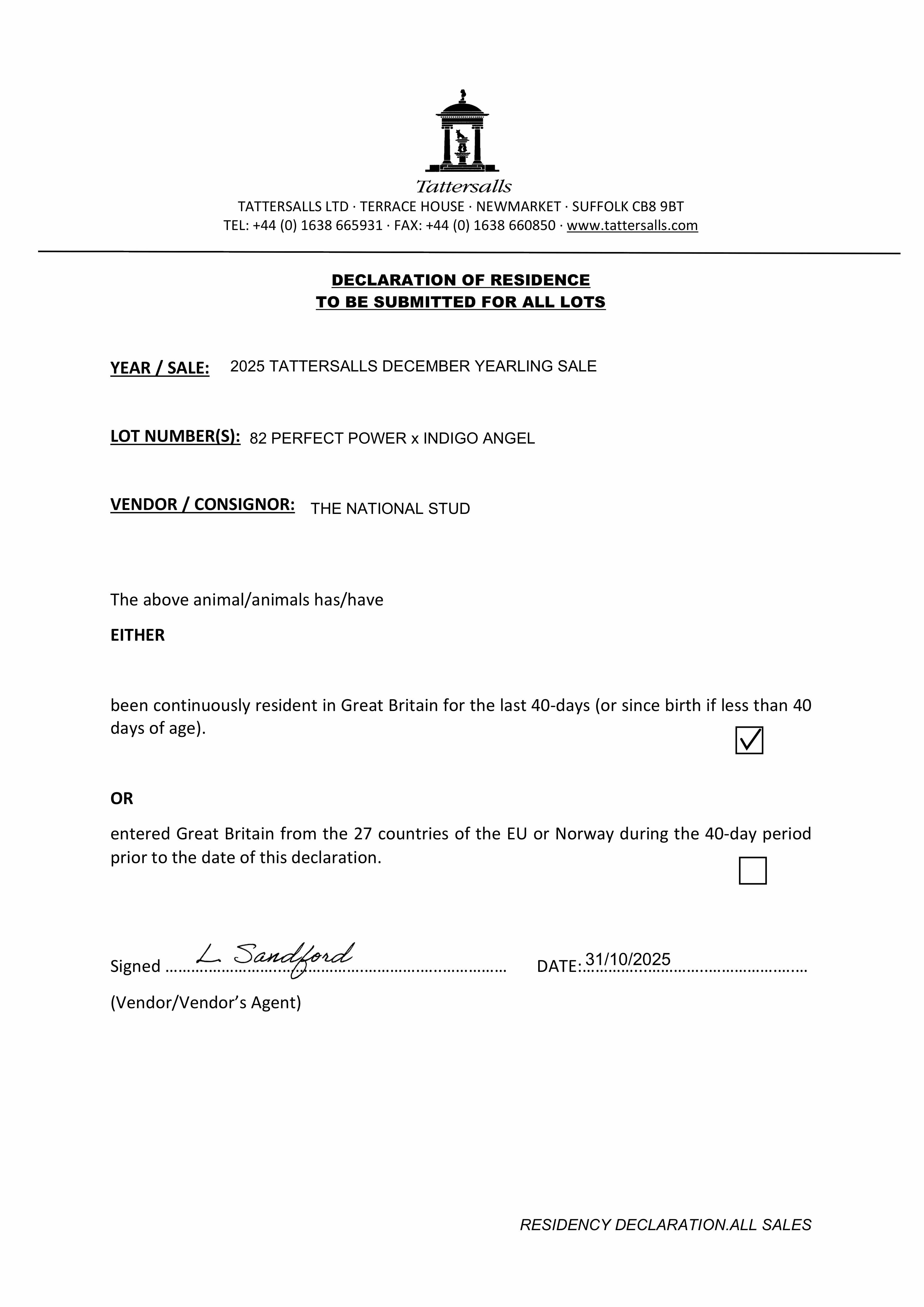 Consignor: The National Stud Ltd.