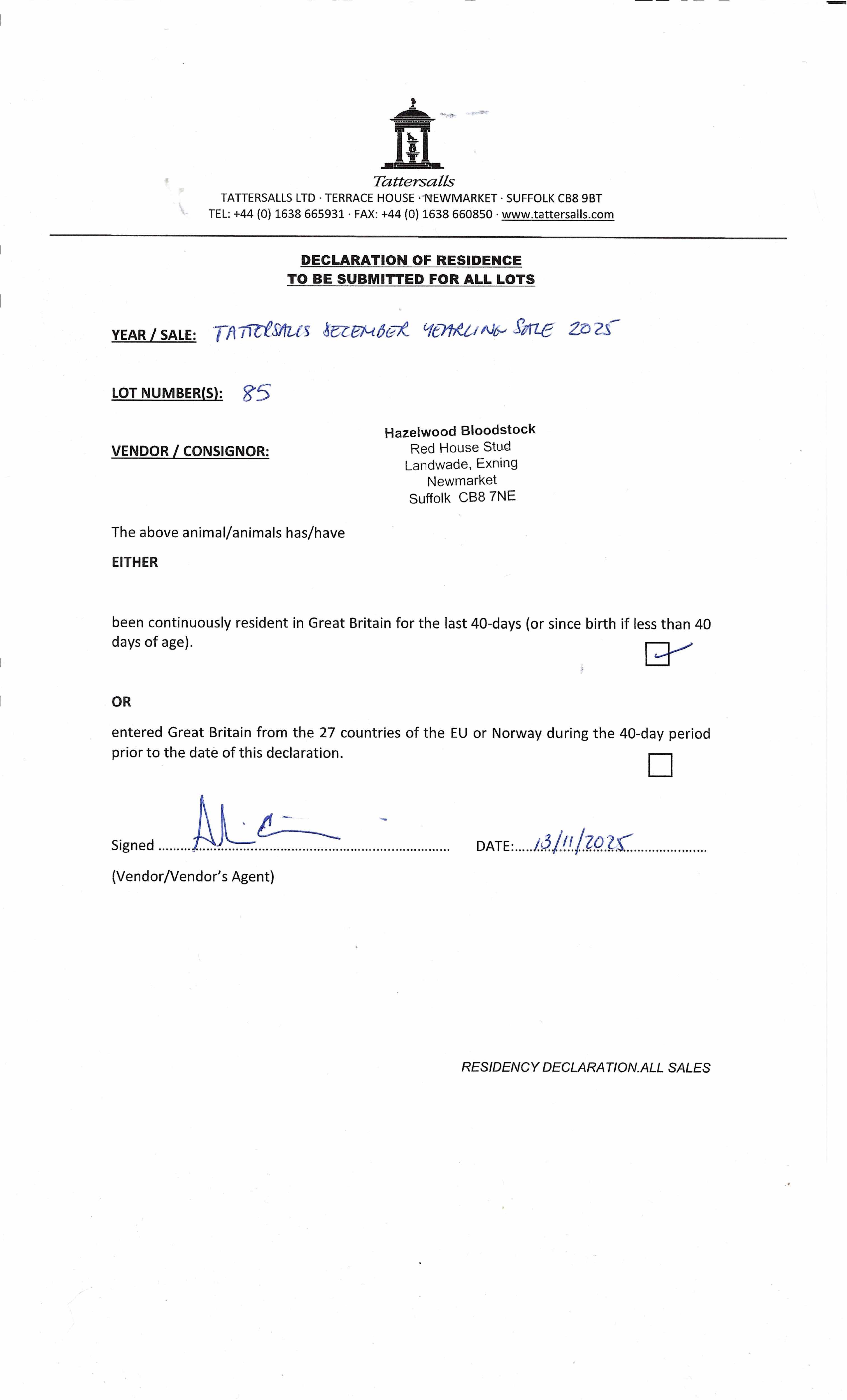 Consignor: Hazelwood Bloodstock