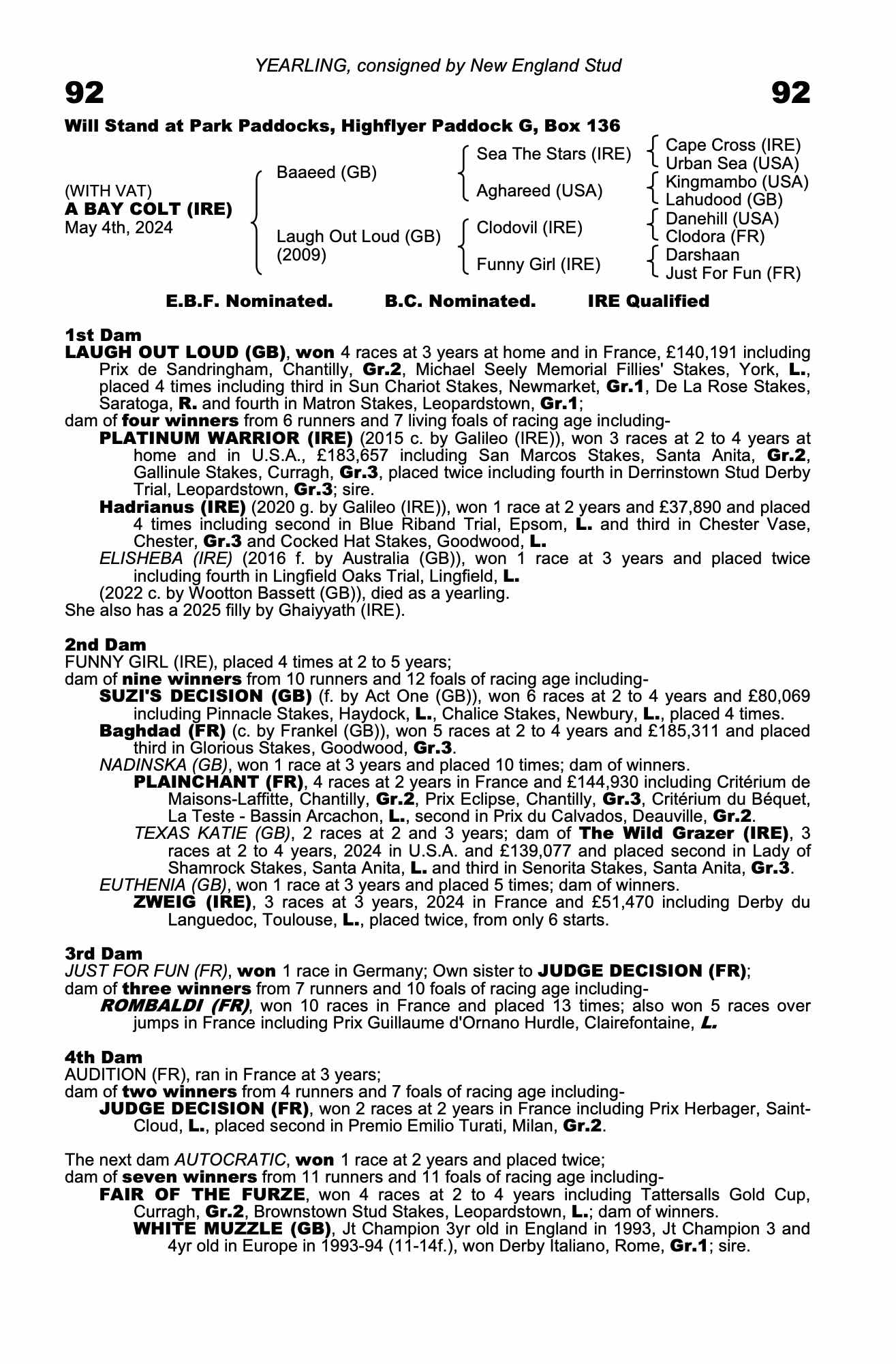 October Yearling Sale, Book 2 2017 lot 566 F. by Australia (GB) 2016, New England Stud=>Blandford Bloodstock 200,000 gns