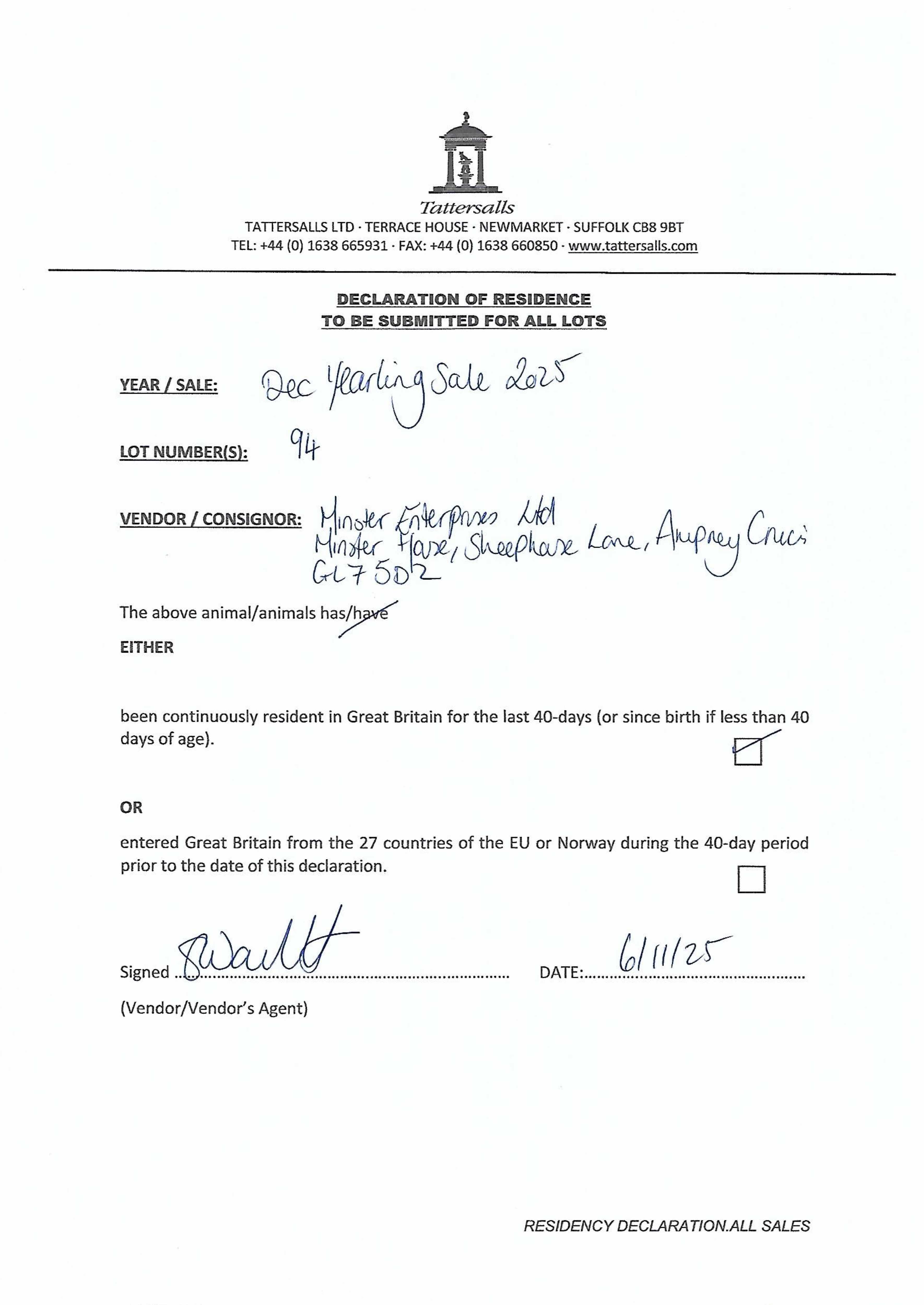 October Yearling Sale, Book 2 2024 lot 884 F. by Saxon Warrior (JPN) 2023, Minster Enterprises Ltd.=>Vendor 38,000 gns