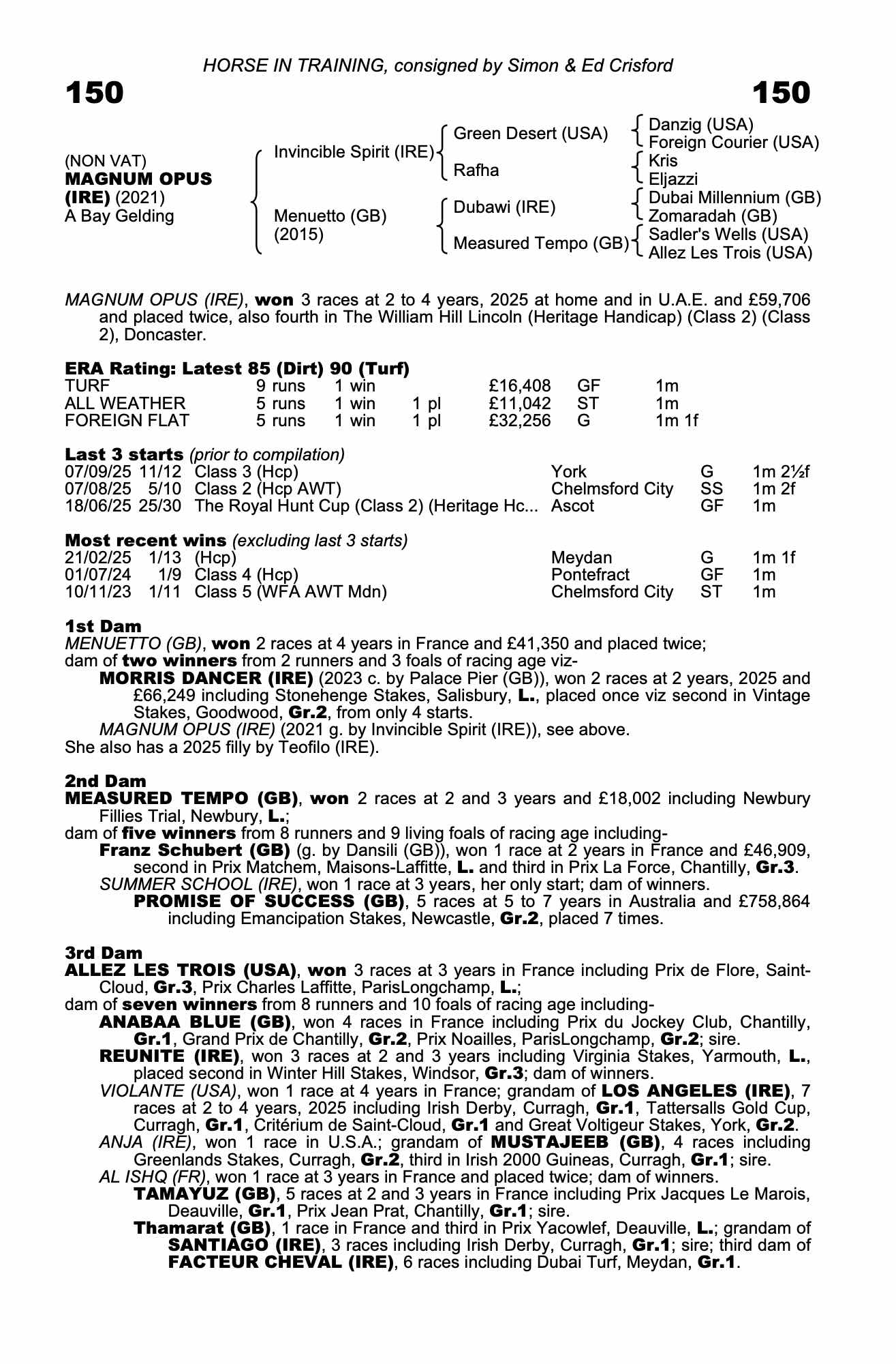 Vendor's Notes: Magnum Opus (IRE) B.G. by Invincible Spirit (IRE) x Menuetto (GB)