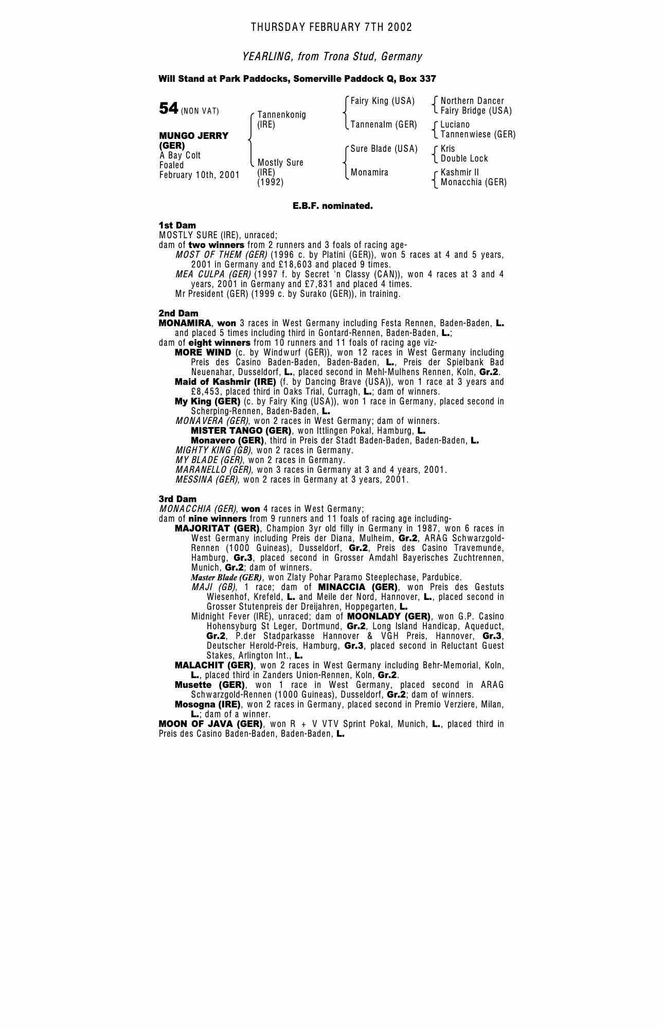 December Mare Sale 2001 lot 1768 Spinning Mouse (GB) (M.), Side Hill Stud=>Ilyas Cokay 10,000 gns