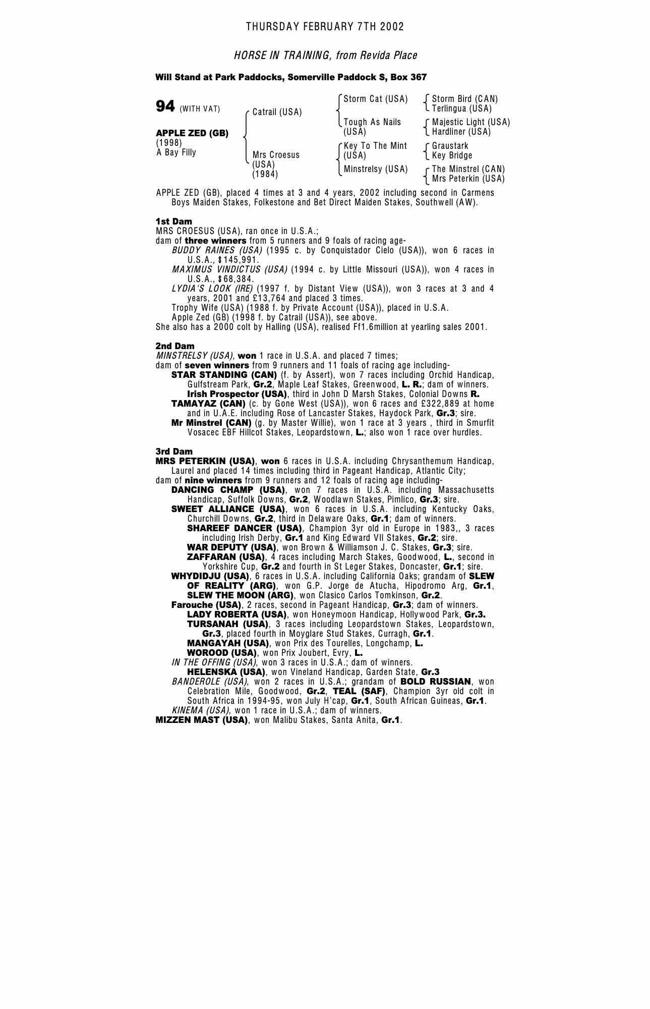 December Mare Sale 2000 lot 2400 Angies Quest (GB) (F.), Warren Place Stables=>Vendor 4,000 gns