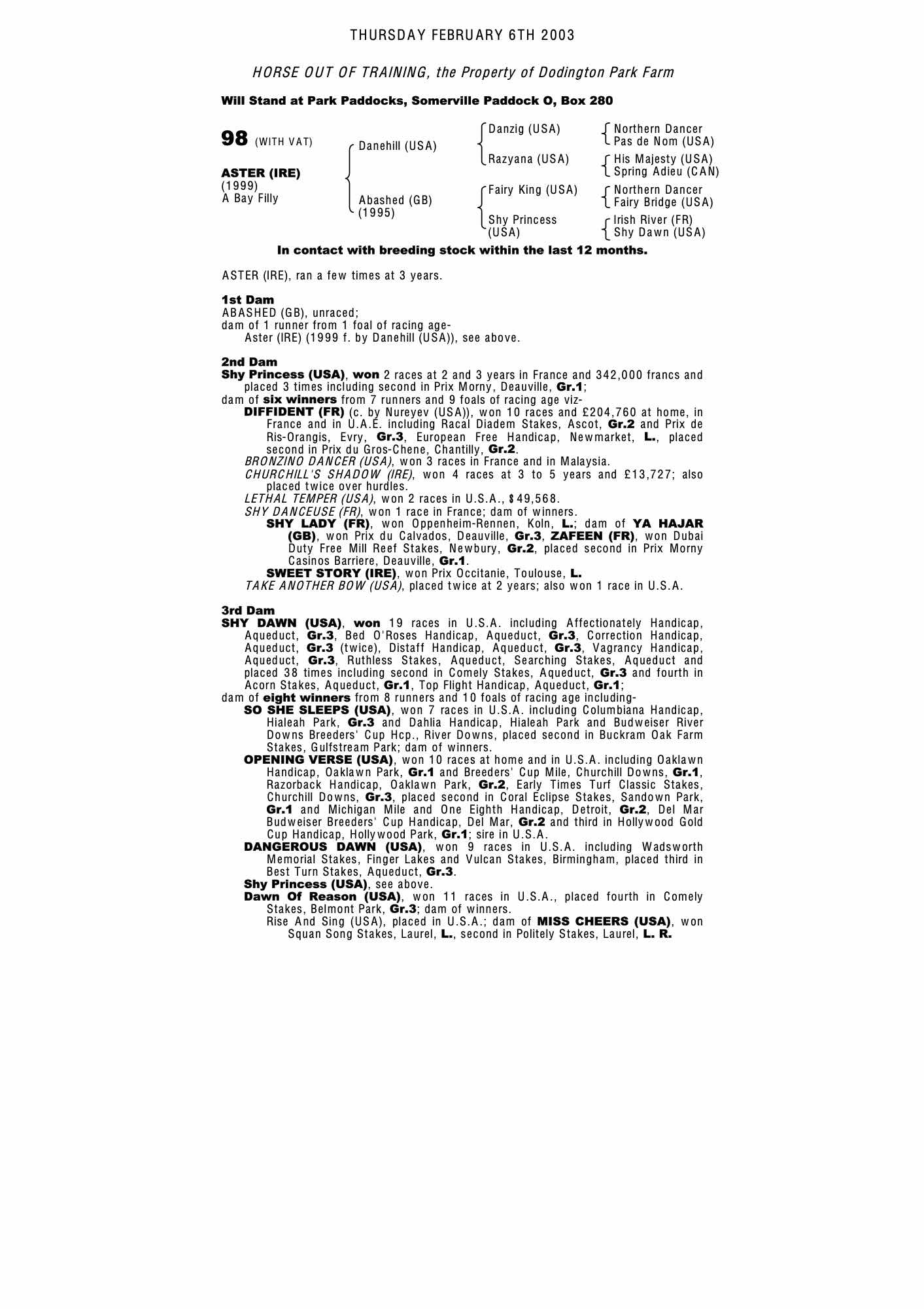 Breeze Up Sale 2001 lot 71 F. , Knocklong House Stud, Ireland=>Vendor 10,000 gns