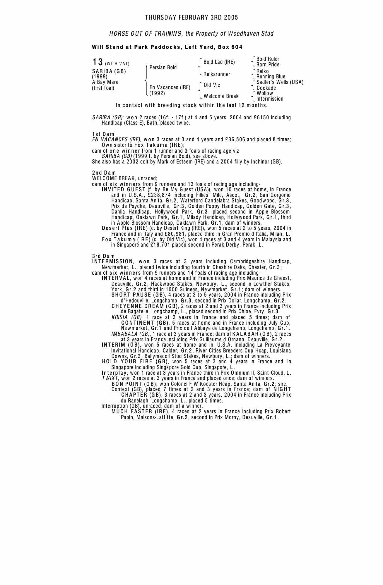 February Sale 2005 lot 12 Aikaterine (GB) (M. by Kris), Woodhaven Stud=>Lot Not Sold