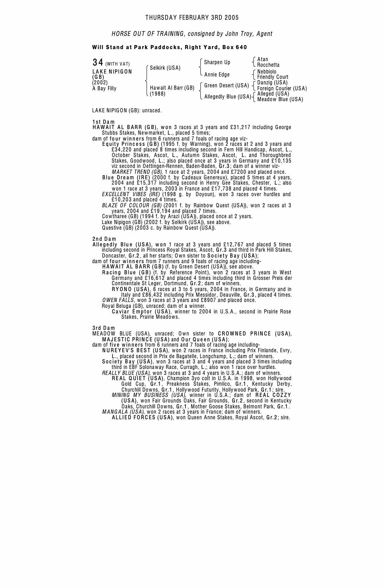 December Mare Sale 2005 lot 1959 Equity Princess (GB) (M. by Warning), John Troy, Agent=>Emerald Bloodstock 50,000 gns