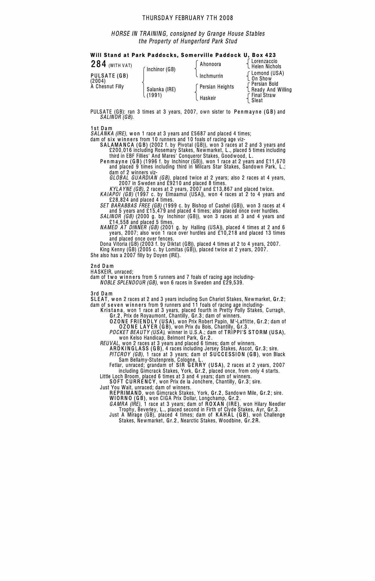 December Foal Sale 2000 lot 767 C. , Gedding Grange Stud=>A Skiffington 70,000 gns