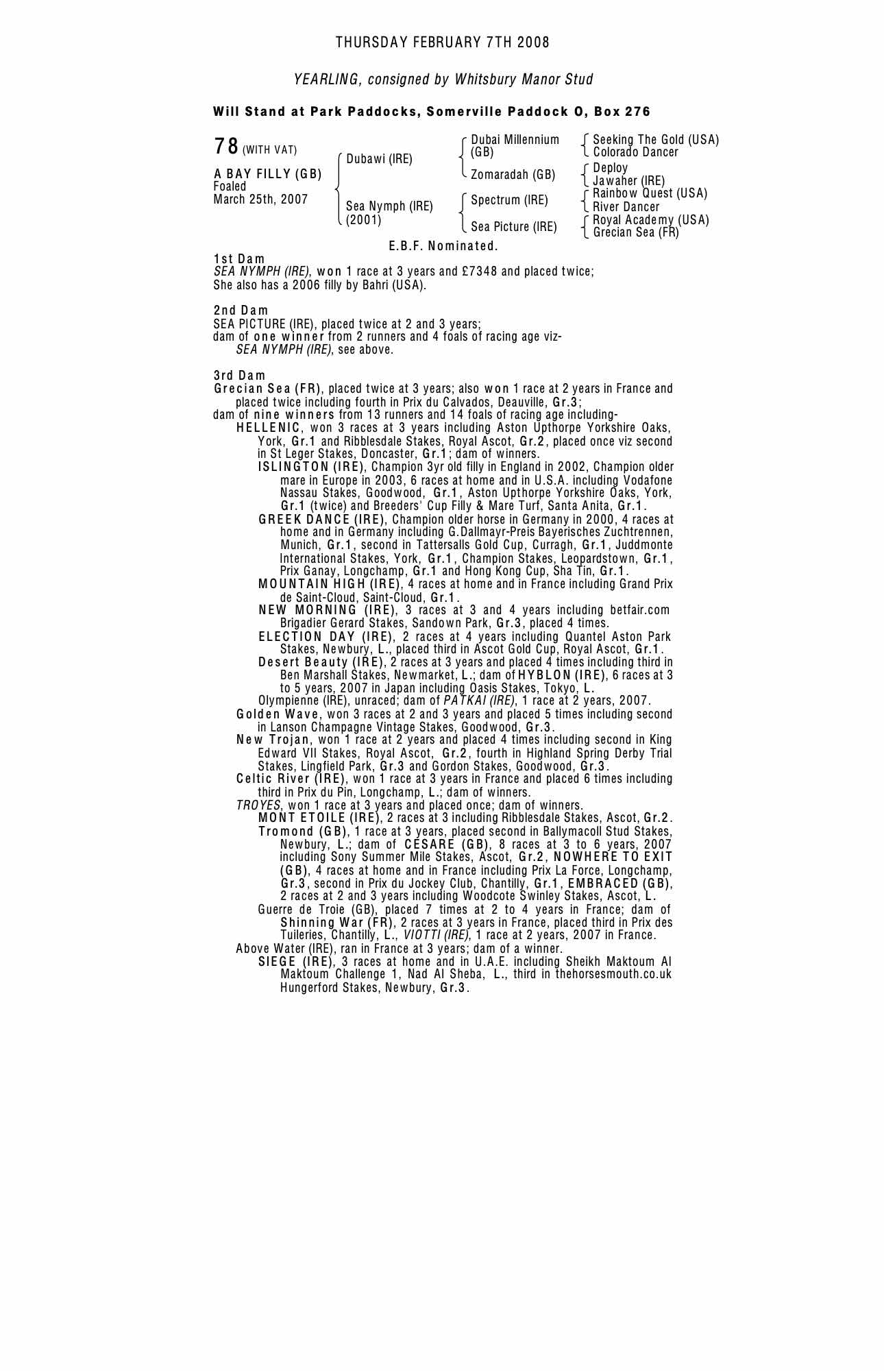 October Yearling Sale, Book 3 2007 lot 1506 F. by Bahri (USA) 2006, Whitsbury Manor Stud=>Vendor 5,000 gns