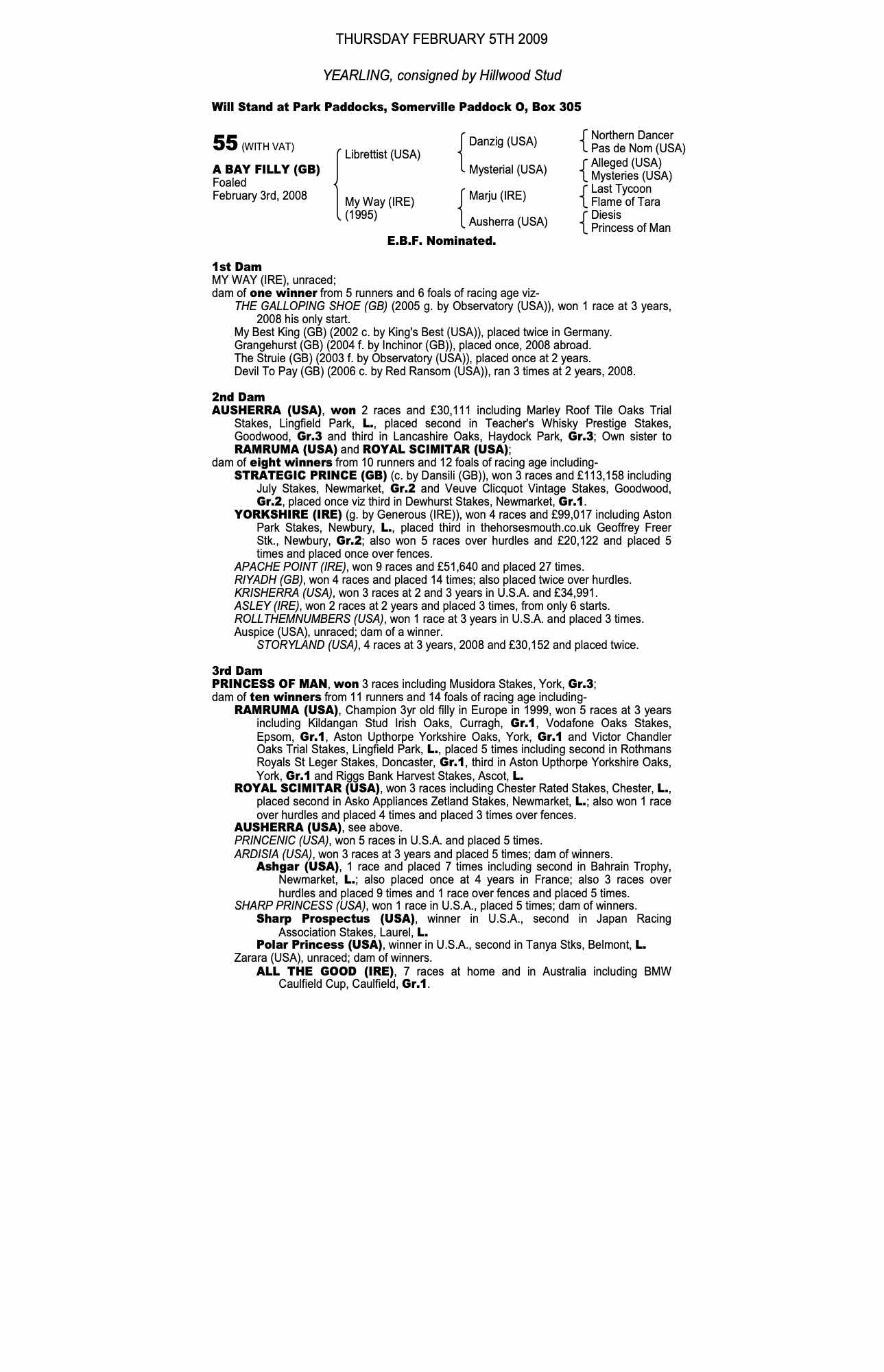 July Sale 2006 lot 217 The Struie (GB) (F. by Observatory (USA)), Wood Hall Stud=>Carlos Martel Santana 1,000 gns
