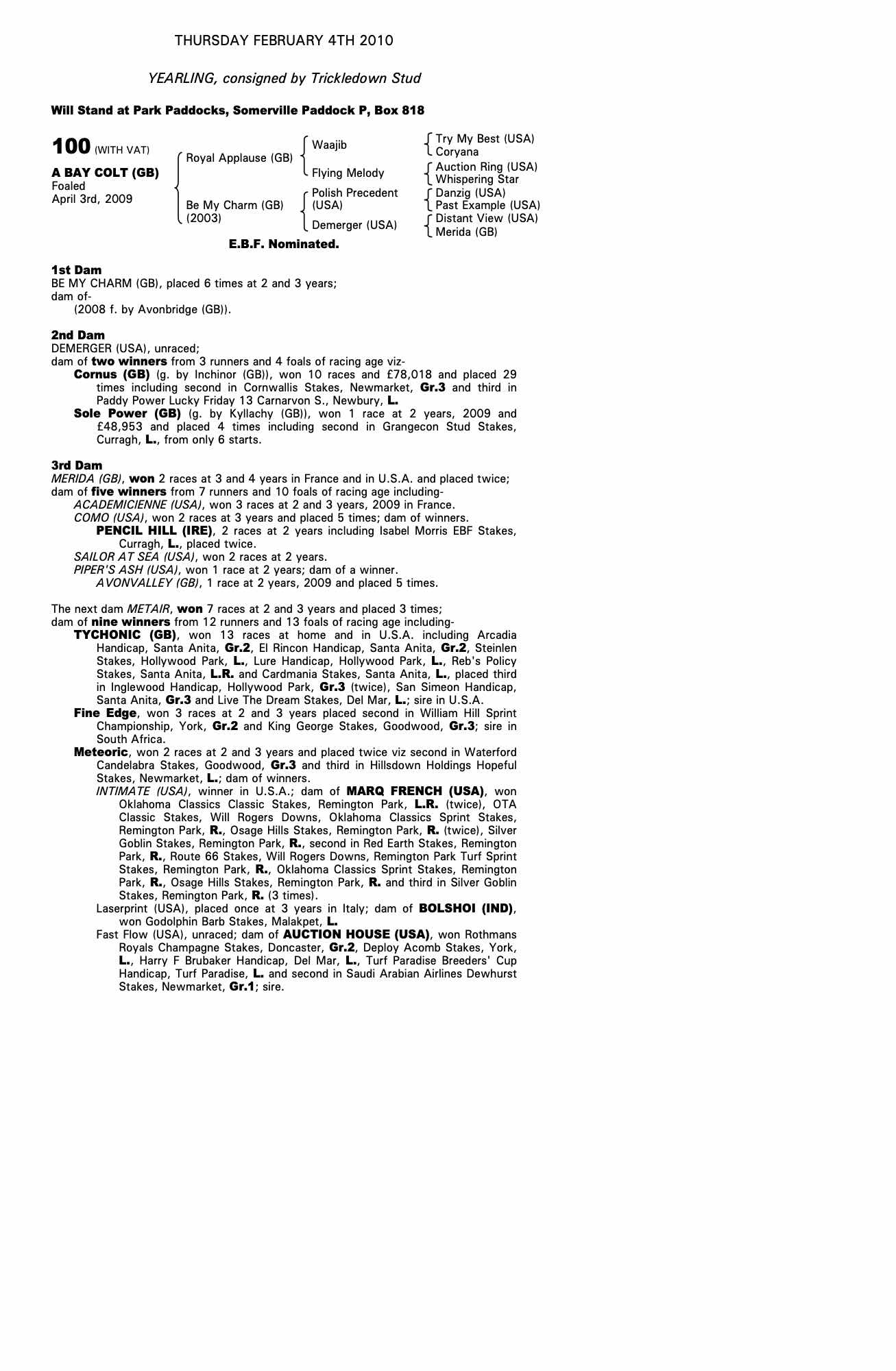December Yearling Sale 2010 lot 63, Trickledown Stud=>Edward Lynam 8,000 gns