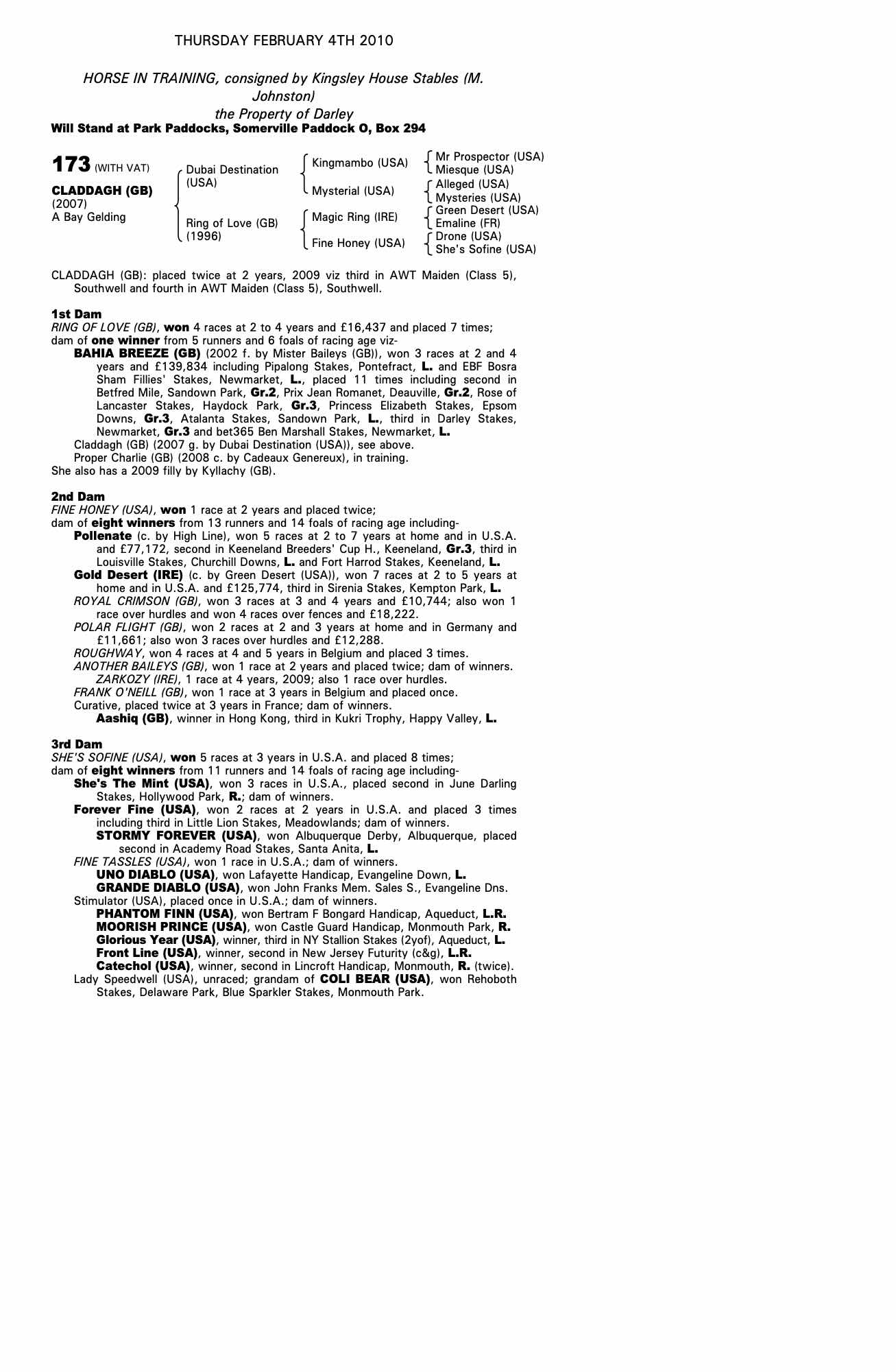 Consignor: Kingsley House Stables (M. Johnston)