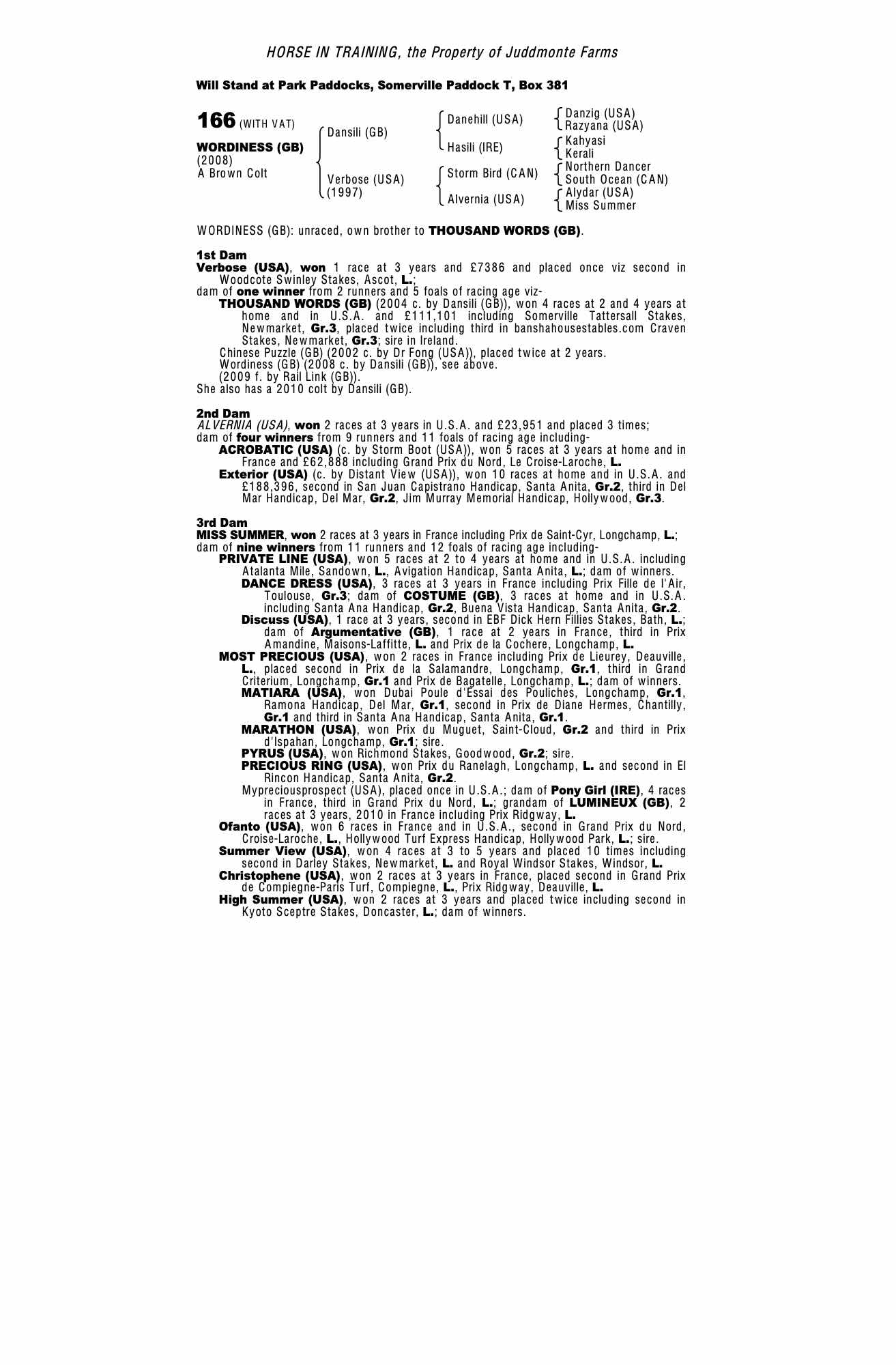December Mare Sale 2008 lot 2340 Vowel (GB) (F. by Distant Music (USA)), Juddmonte Farms=>Lot Not Sold