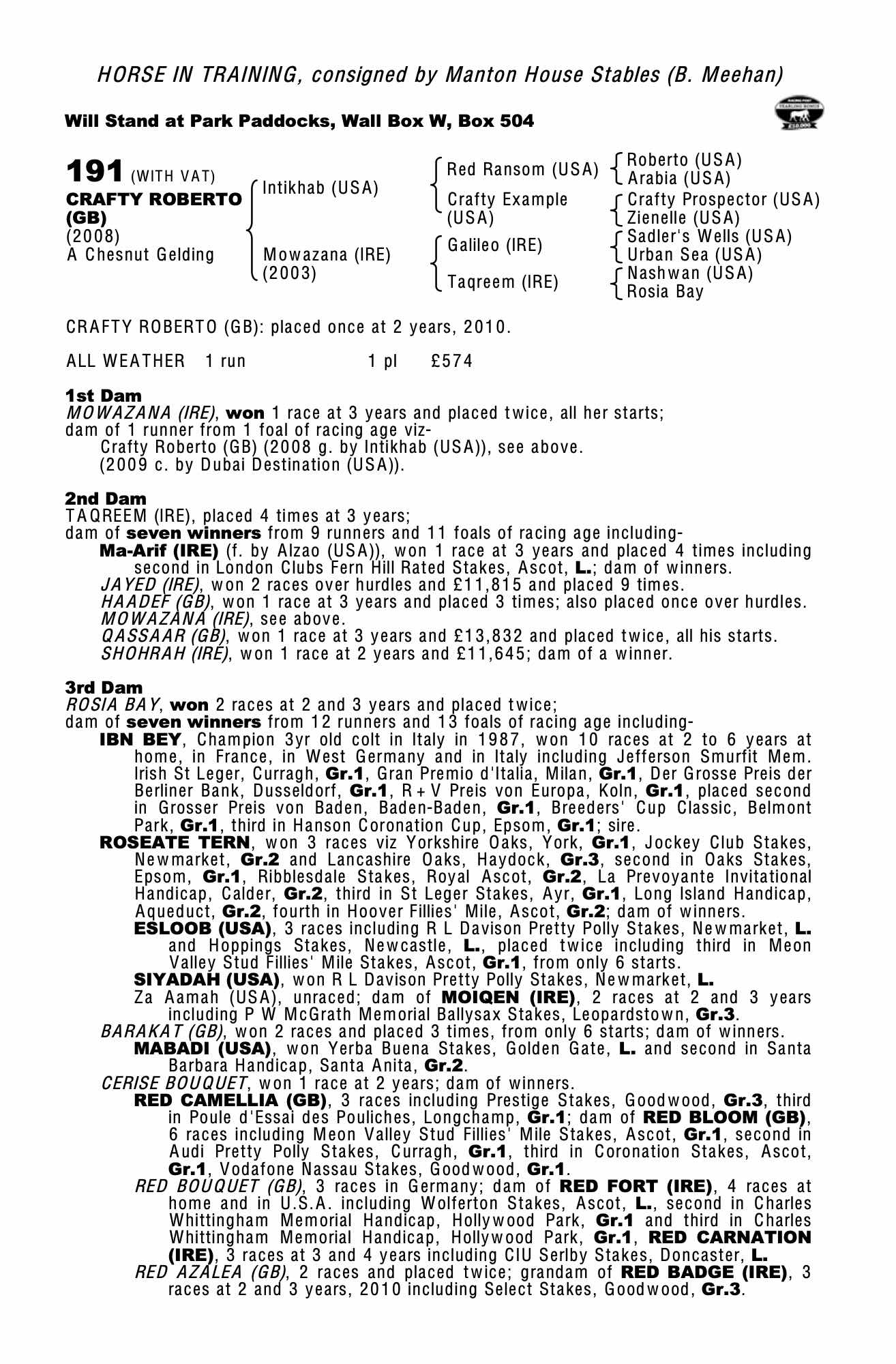 Autumn Horses in Training Sale 2011 lot 1160, Scuderia La Buona Stella, Italy (R. Santini)=>BBA Ireland 8,000 gns