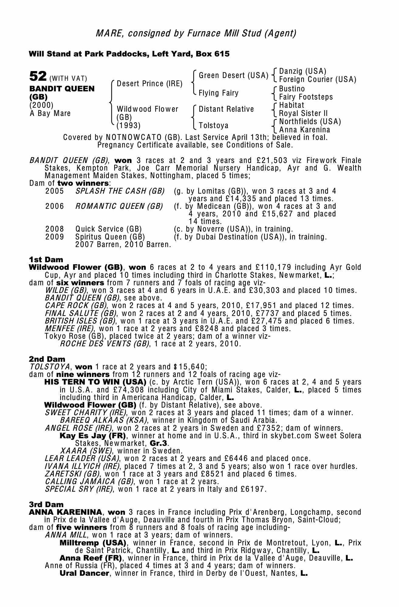 Consignor: Furnace Mill Stud (Agent)