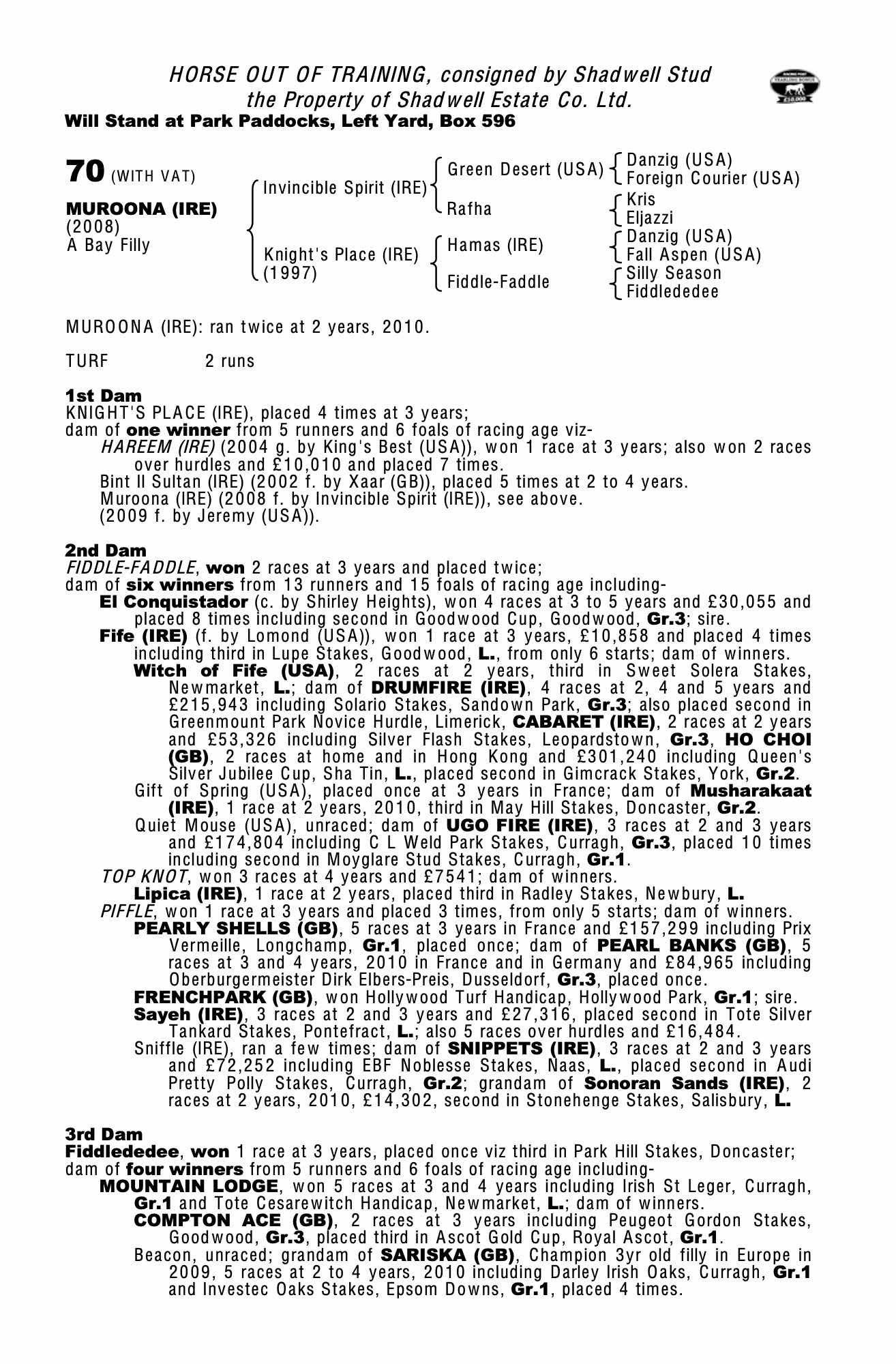 July Sale 2011 lot 58, Shadwell Stud=>Bahman Ghazali 8,000 gns
