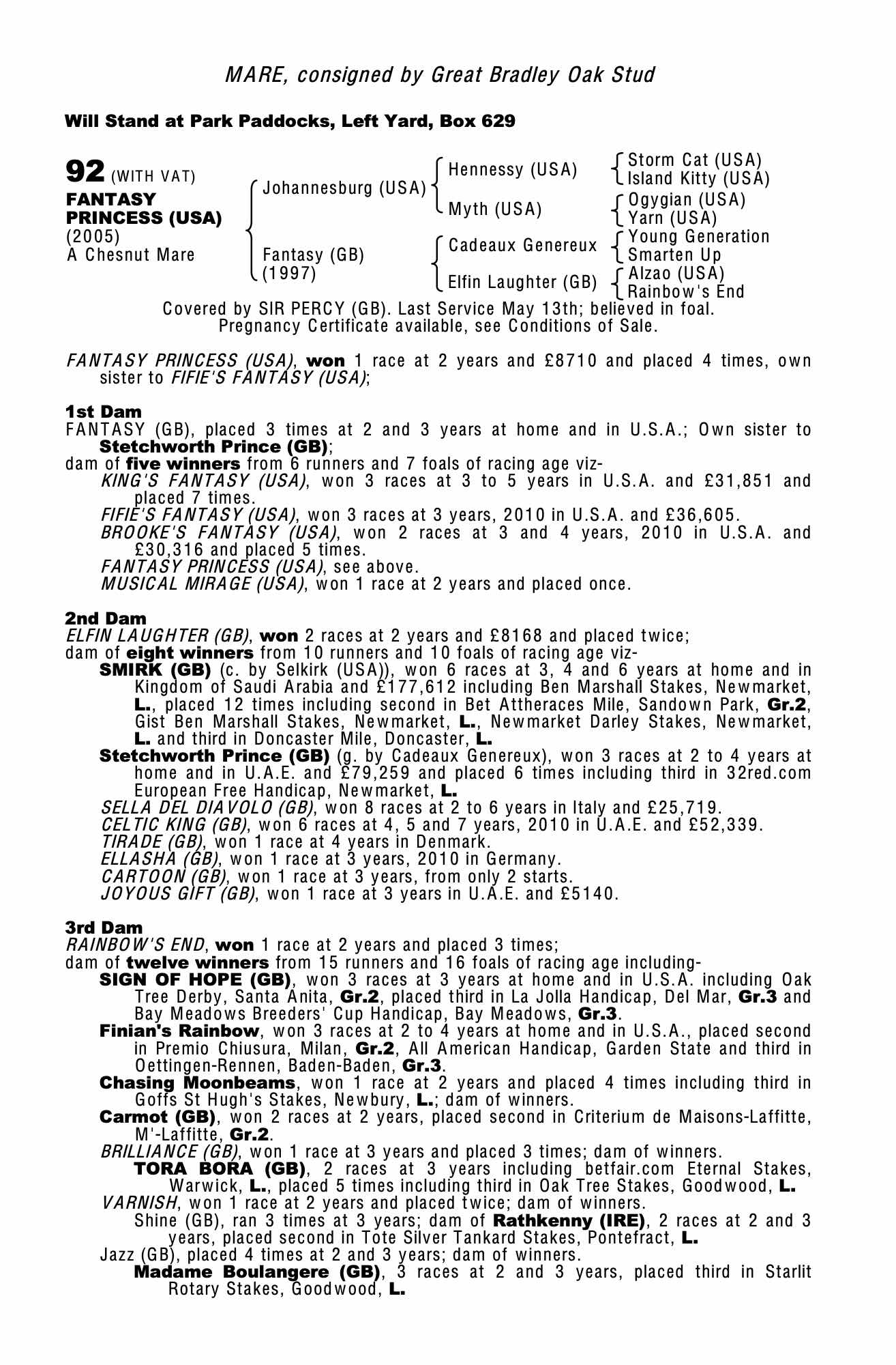 October Yearling Sale, Book 2 2005 lot 1034 F. by Royal Anthem (USA) 2004, Voute Sales, Agent=>John Robinson 9,500 gns