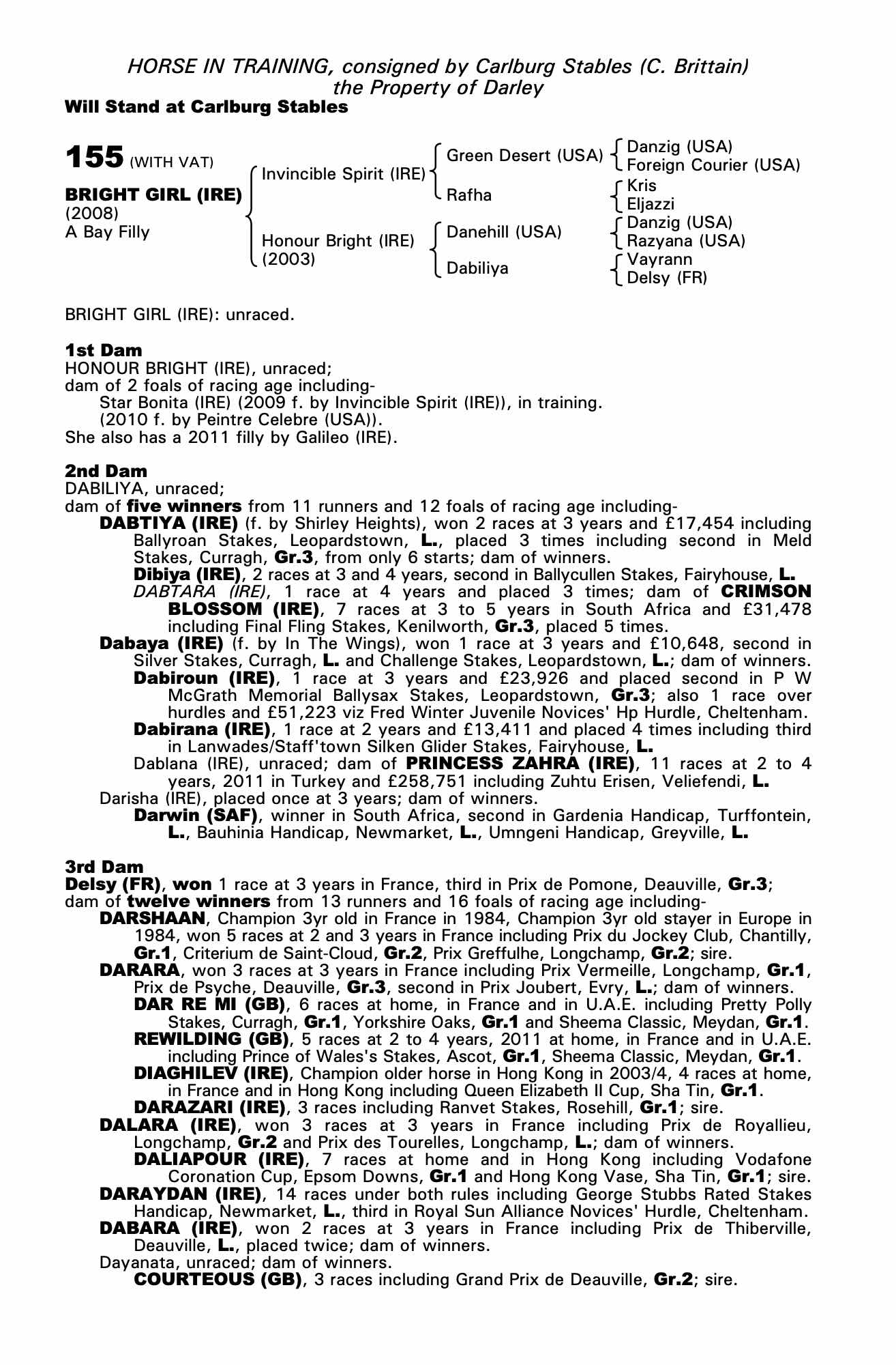October Yearling Sale, Book 1 2010 lot 297 F. 2009, Colbinstown Stud, Ireland (Agent)=>Willie Browne 115,000 gns
