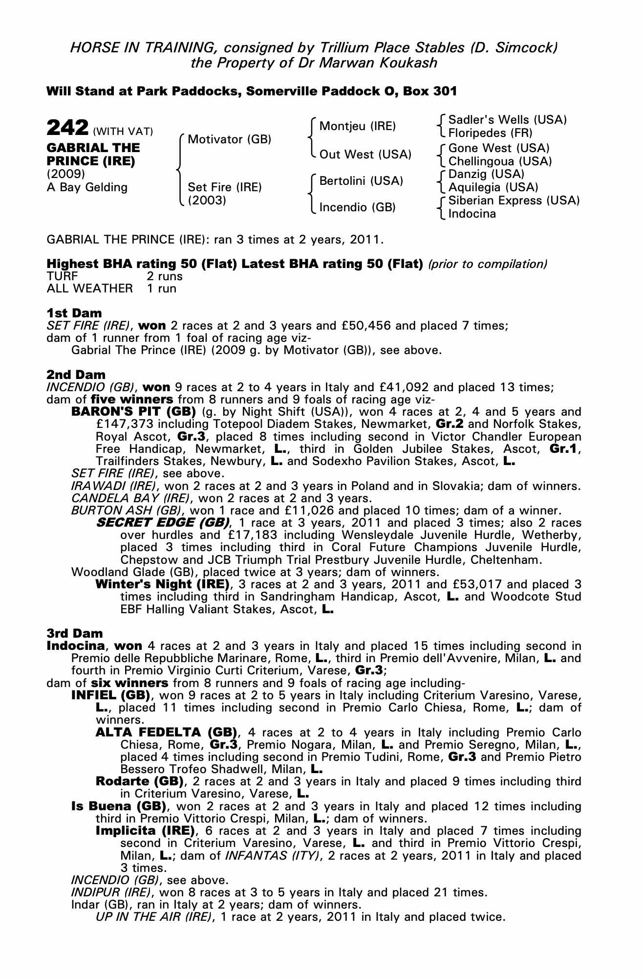 Autumn Horses in Training Sale lot 364 Bravo Zolo (IRE) (G. by Rip Van Winkle (IRE)), Shalfleet Stables (J. Noseda)=>Stroud Coleman Bloodstock 170,000 gns
