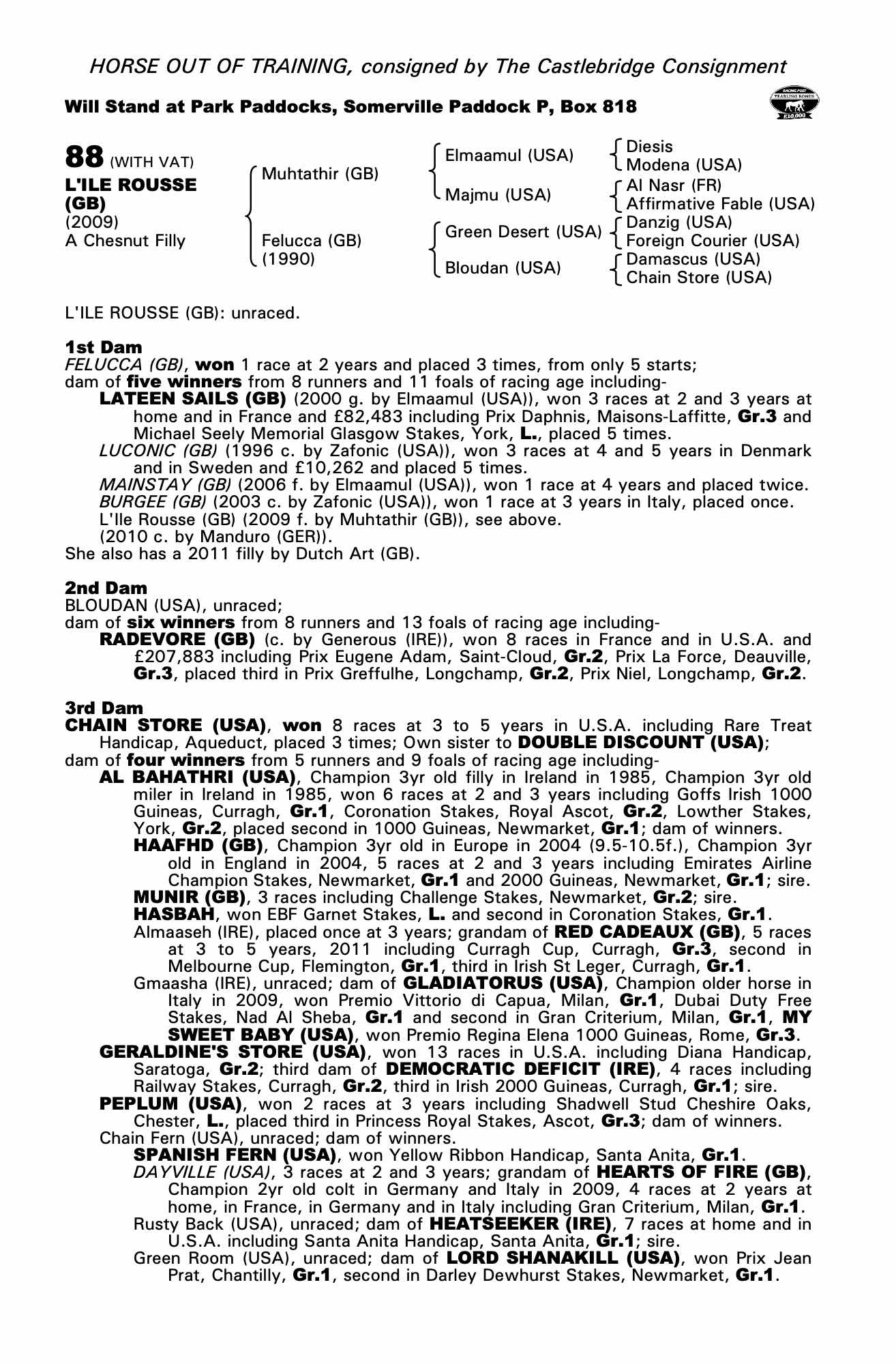 Autumn Horses in Training Sale 1999 lot 937 Luconic (GB) (C. by Zafonic (USA)), Juddmonte Farms=>Madeleine Smith 1,400 gns