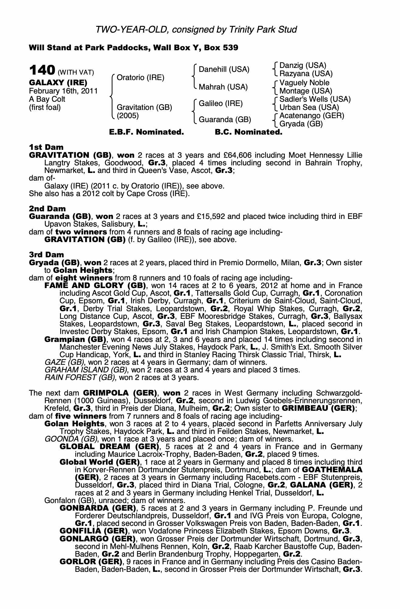 Consignor: Trinity Park Stud
