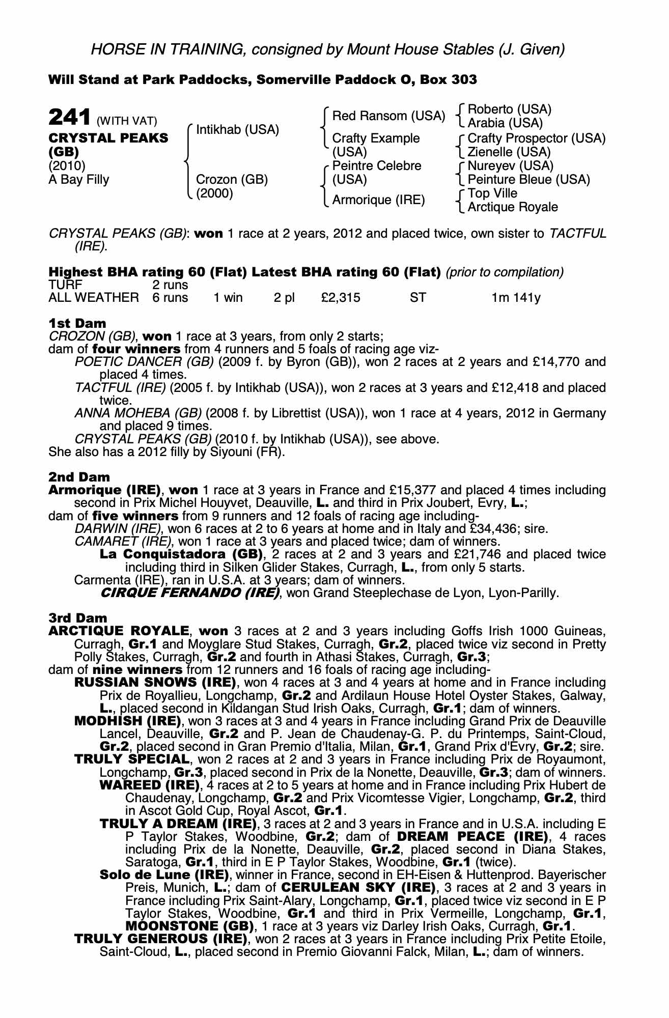 Consignor: Mount House Stables (J. Given)