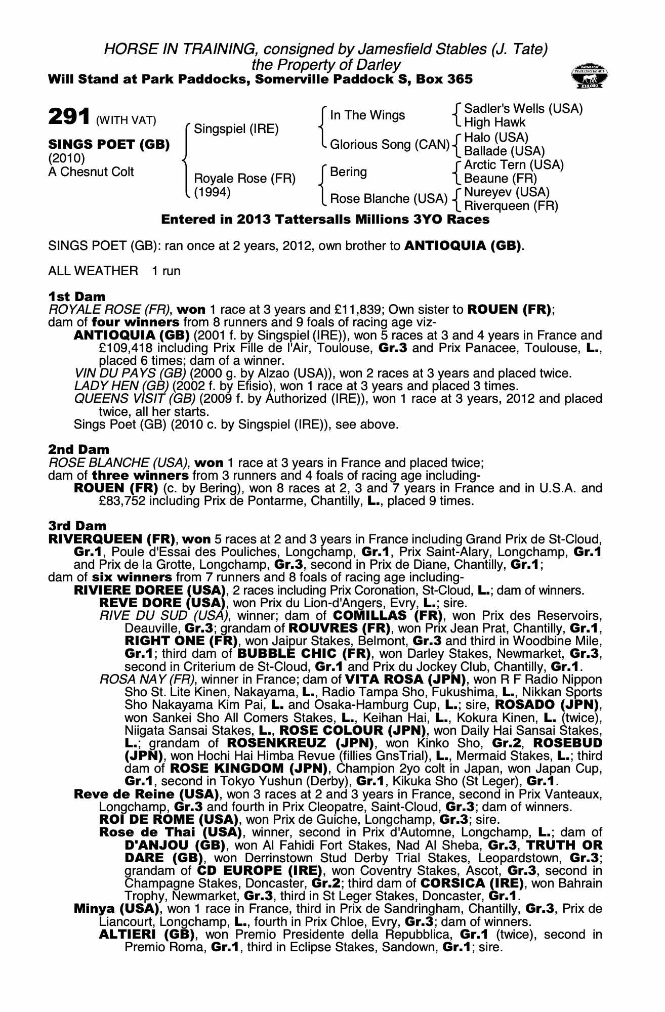 Consignor: Jamesfield Stables (J. Tate)