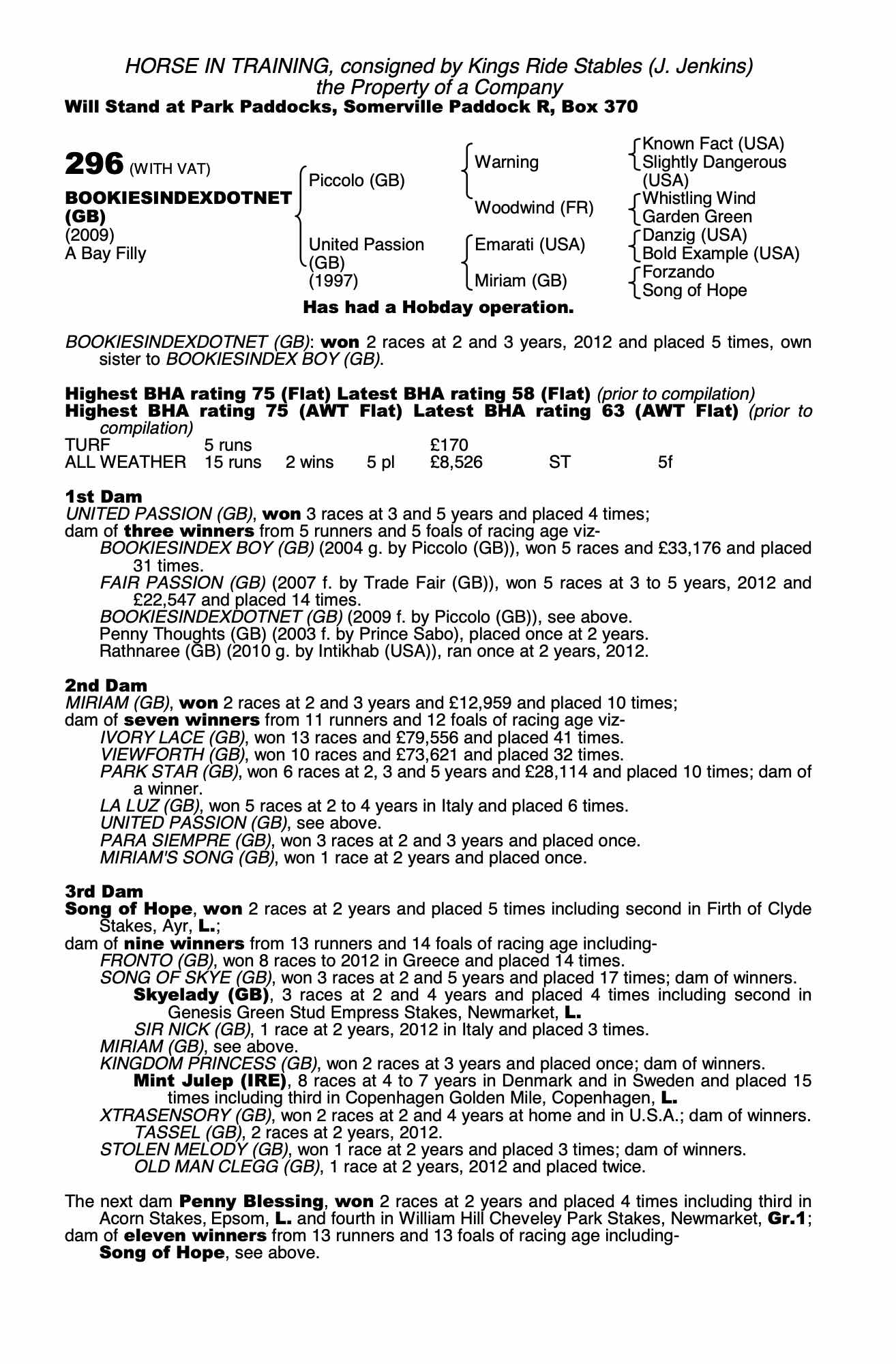 February Sale 2006 lot 184 Penny Thoughts (GB) (F. by Prince Sabo), Horsley Brook Farm=>Lot Not Sold