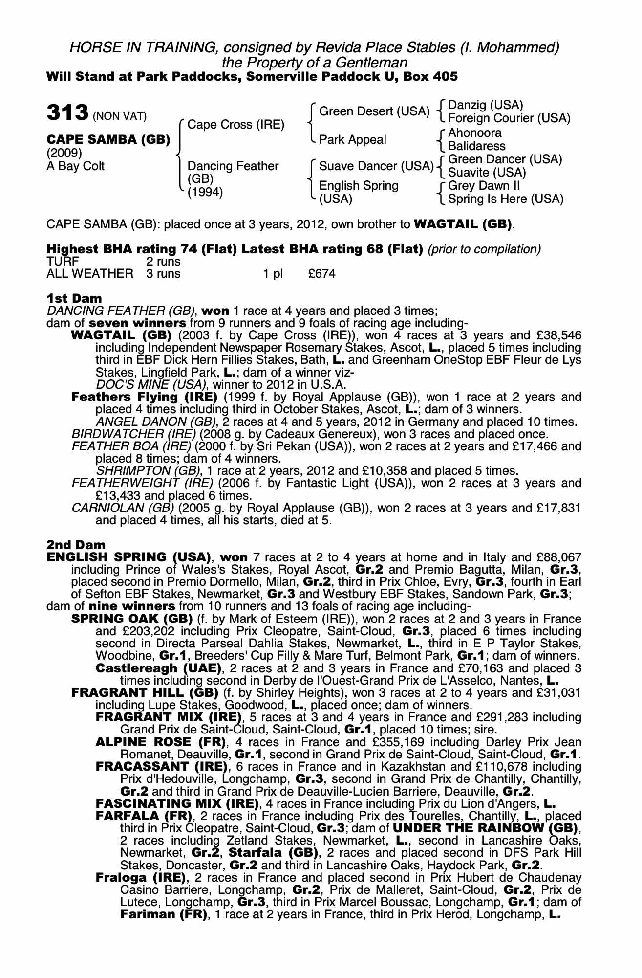 Autumn Yearling Sale 2002 lot 1595 C. by Second Empire (IRE) 2001, John Troy, Agent=>Declan Carroll 13,000 gns