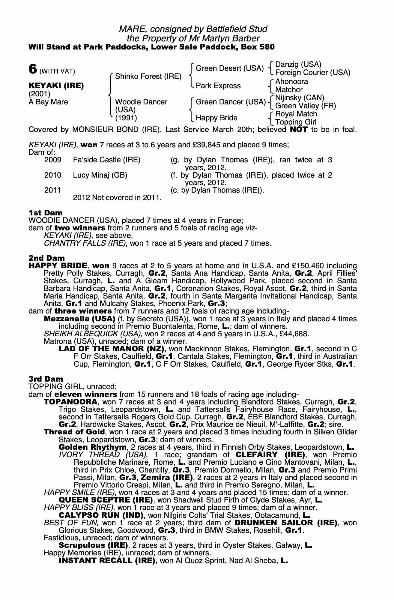 December Yearling Sale 1999 lot 206 C. by Charnwood Forest (IRE) , Rathbarry Stud, Ireland (Agent)=>Anthony Stroud Bloodstock 15,000 gns