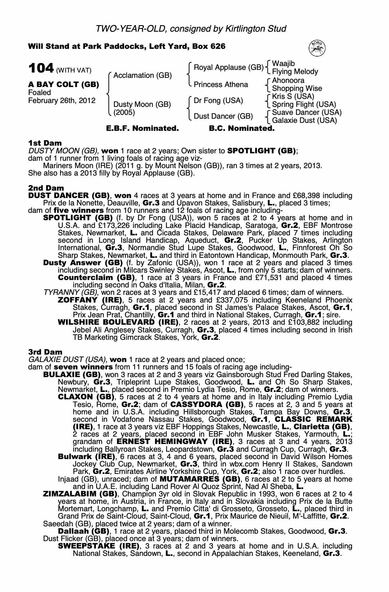 December Yearling Sale 2014 lot 13 F. by Royal Applause (GB) 2013, Houghton Bloodstock=>Five Star Bloodstock 1,500 gns