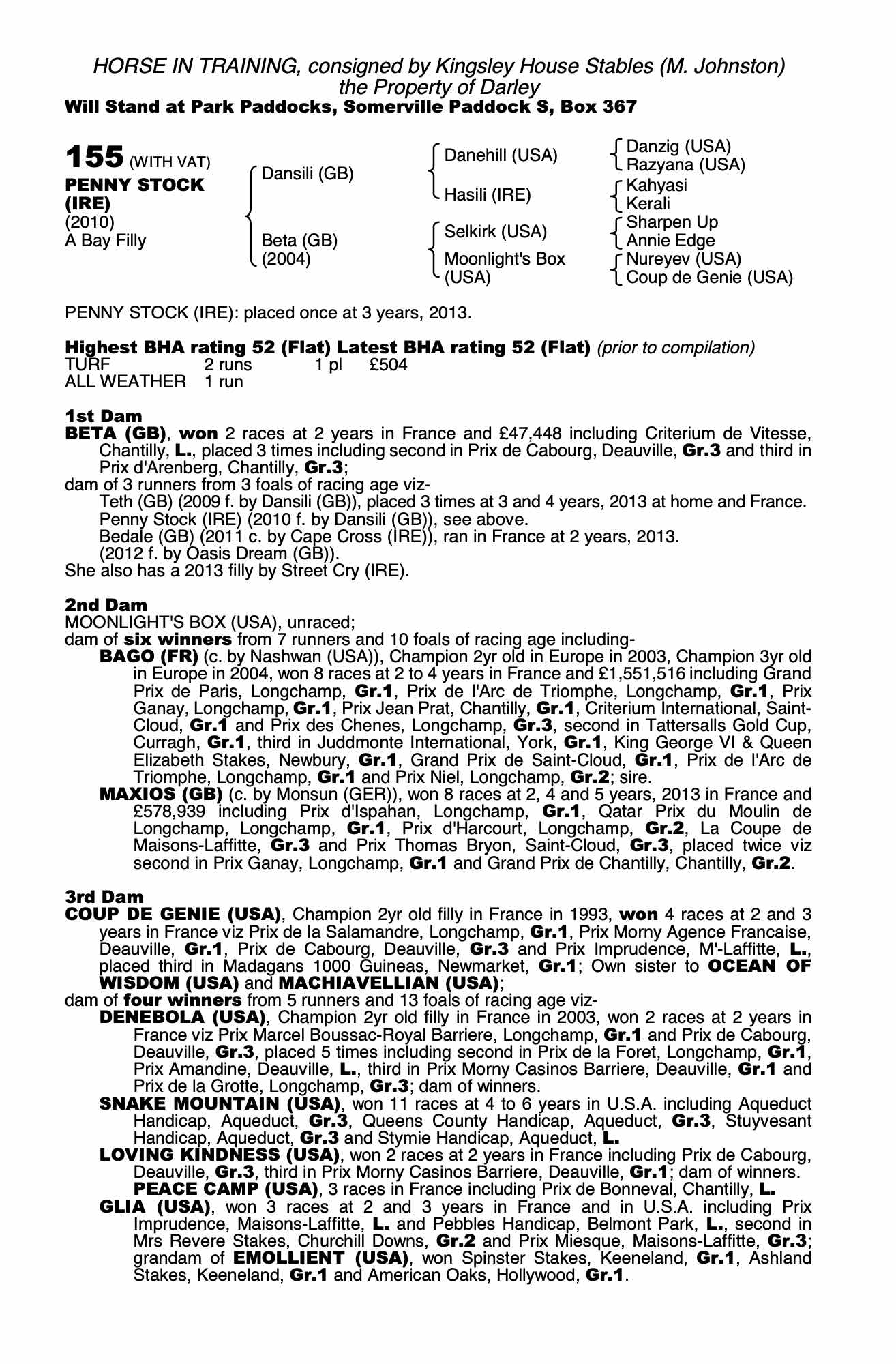 Consignor: Kingsley House Stables (M. Johnston)