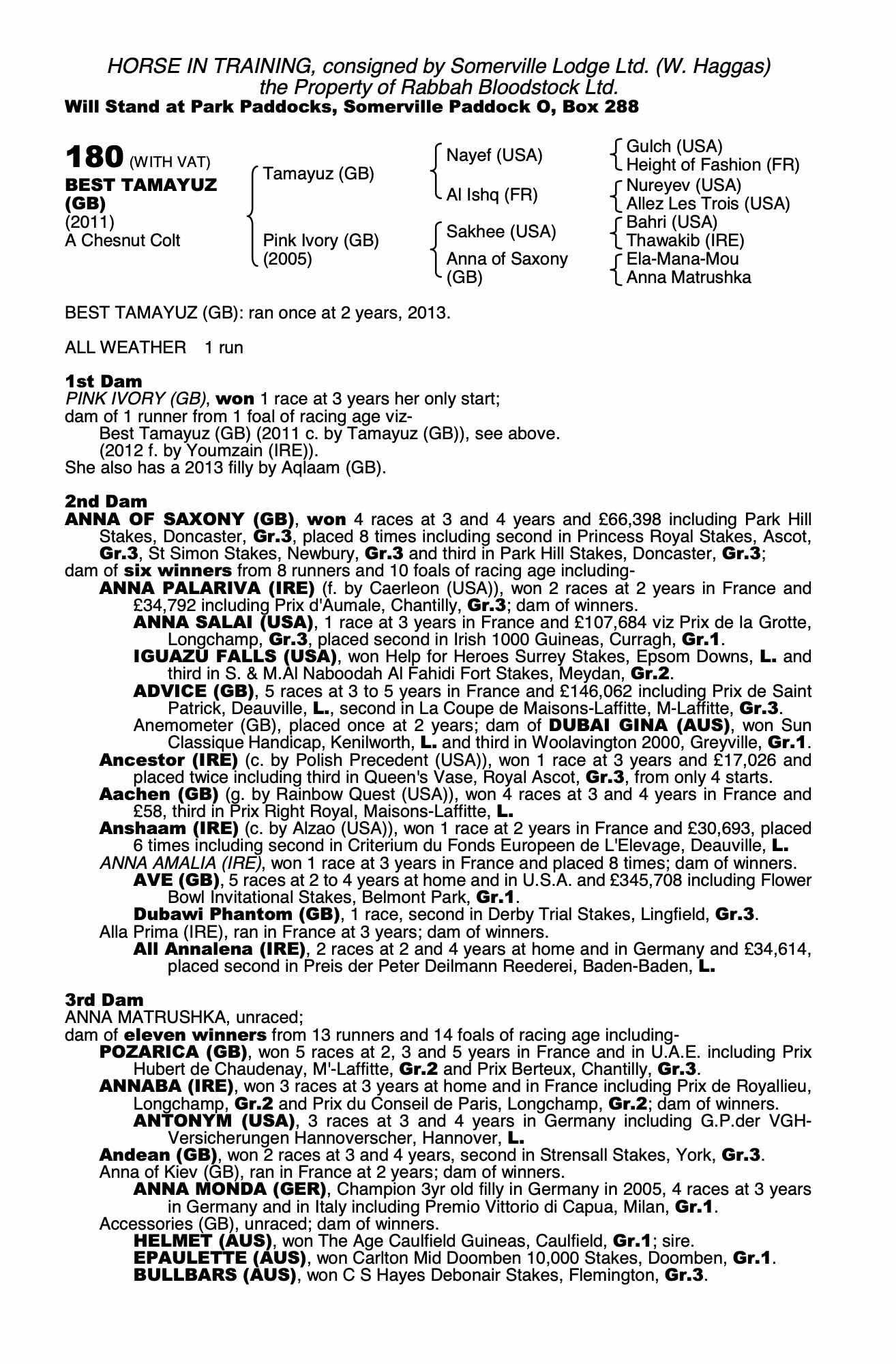 Consignor: Somerville Lodge Ltd. (W. Haggas)