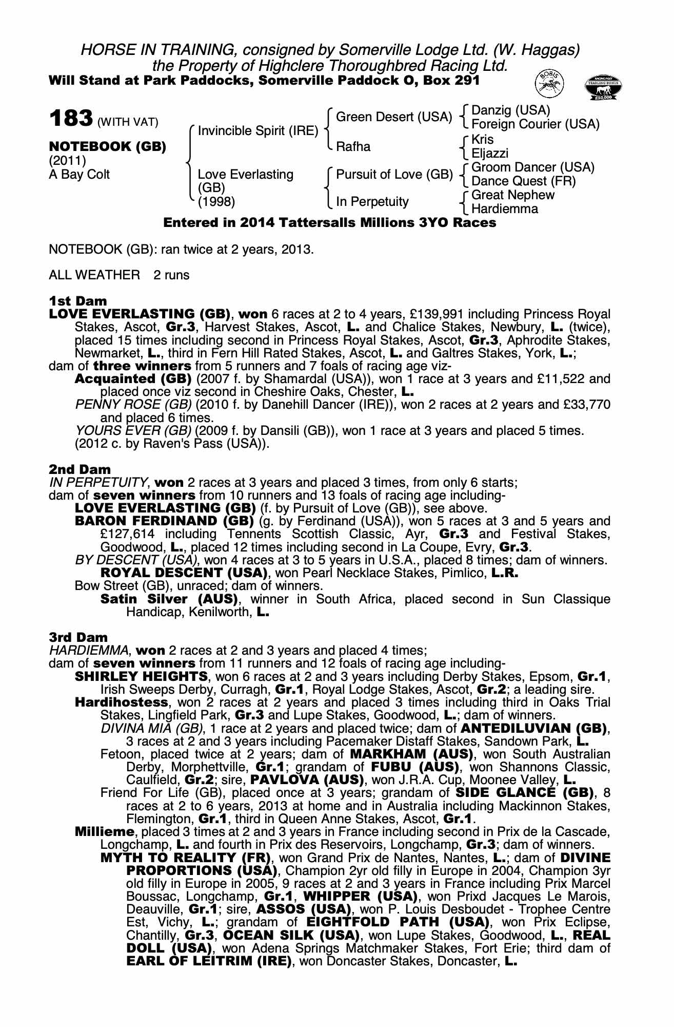 Consignor: Somerville Lodge Ltd. (W. Haggas)