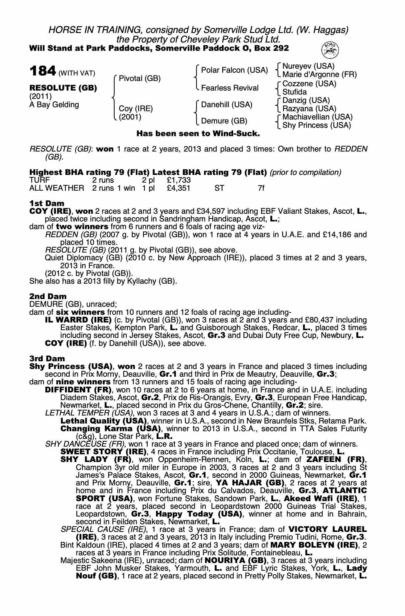 Consignor: Somerville Lodge Ltd. (W. Haggas)