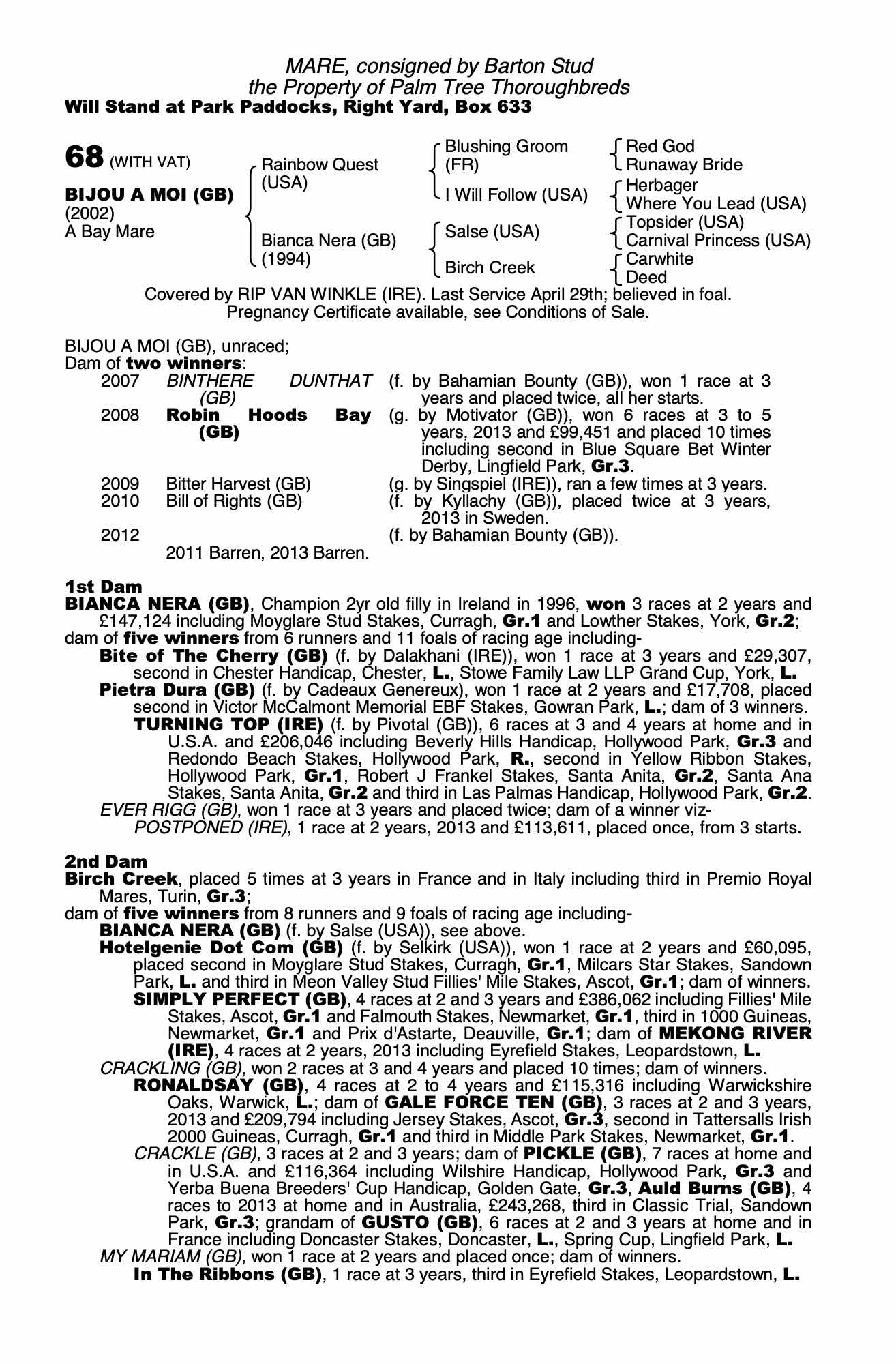 July Sale 2013 lot 672 Bill of Rights (GB) (F. by Kyllachy (GB)), Fitzroy House Stables (M. Bell)=>Nathalie Mortensen 800 gns