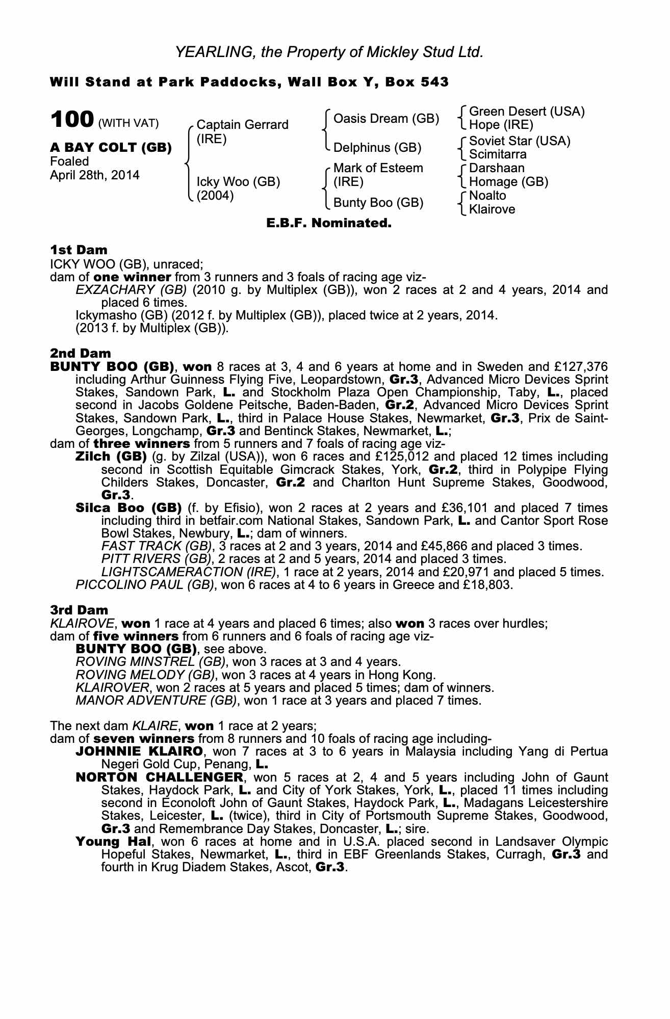 Consignor: Mickley Stud Ltd.