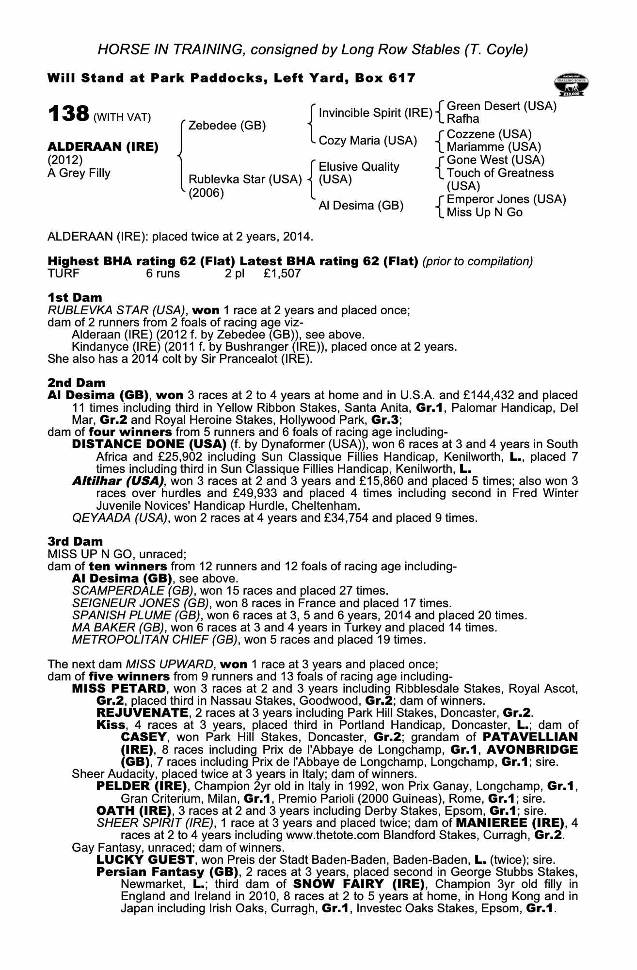 October Yearling Sale, Book 3 2013 lot 1550, The Forge Stables, Ireland=>Middleham Park Racing 9,000 gns