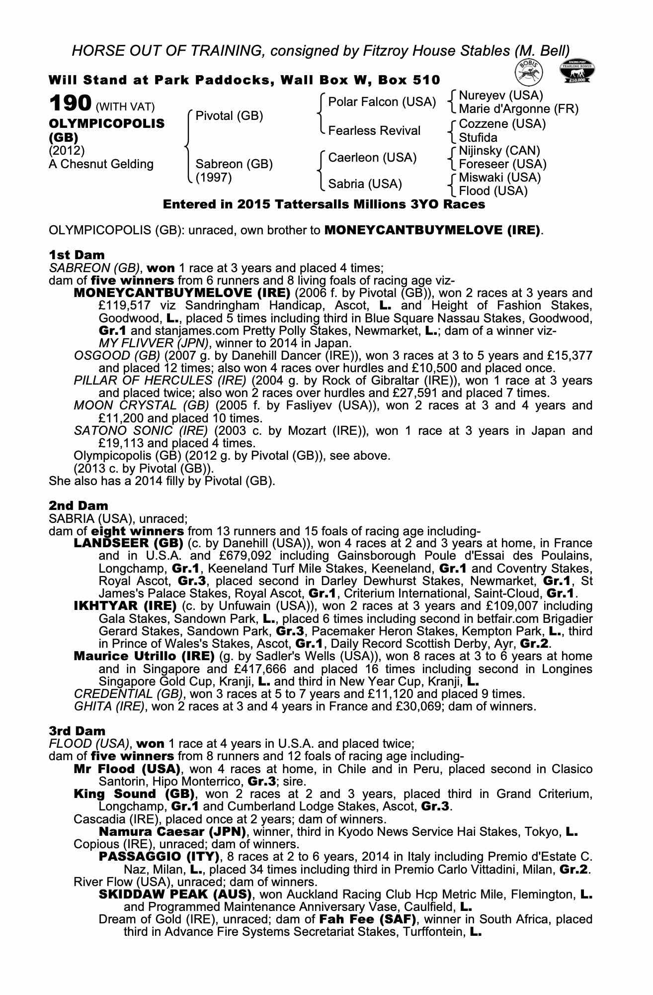 October Yearling Sale Book 1, 2015 lot 419 F. 2014, Watership Down Stud=>Cheveley Park Stud 130,000 gns