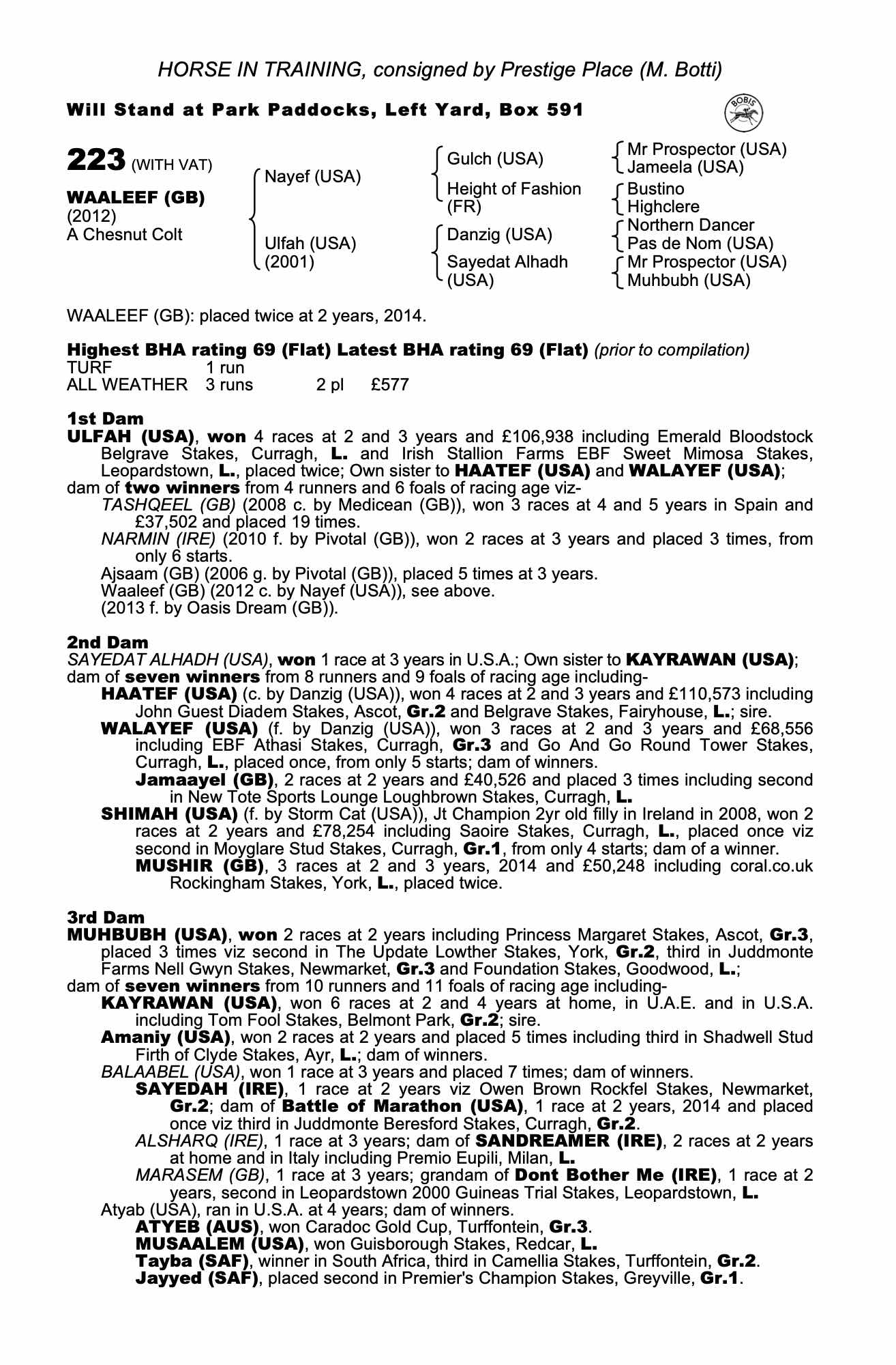 December Mare Sale 2012 lot 2246 Muraafiqah (GB) (F. by Haafhd (GB)), Shadwell Stud=>Pir Sadruddin Shah 1,500 gns
