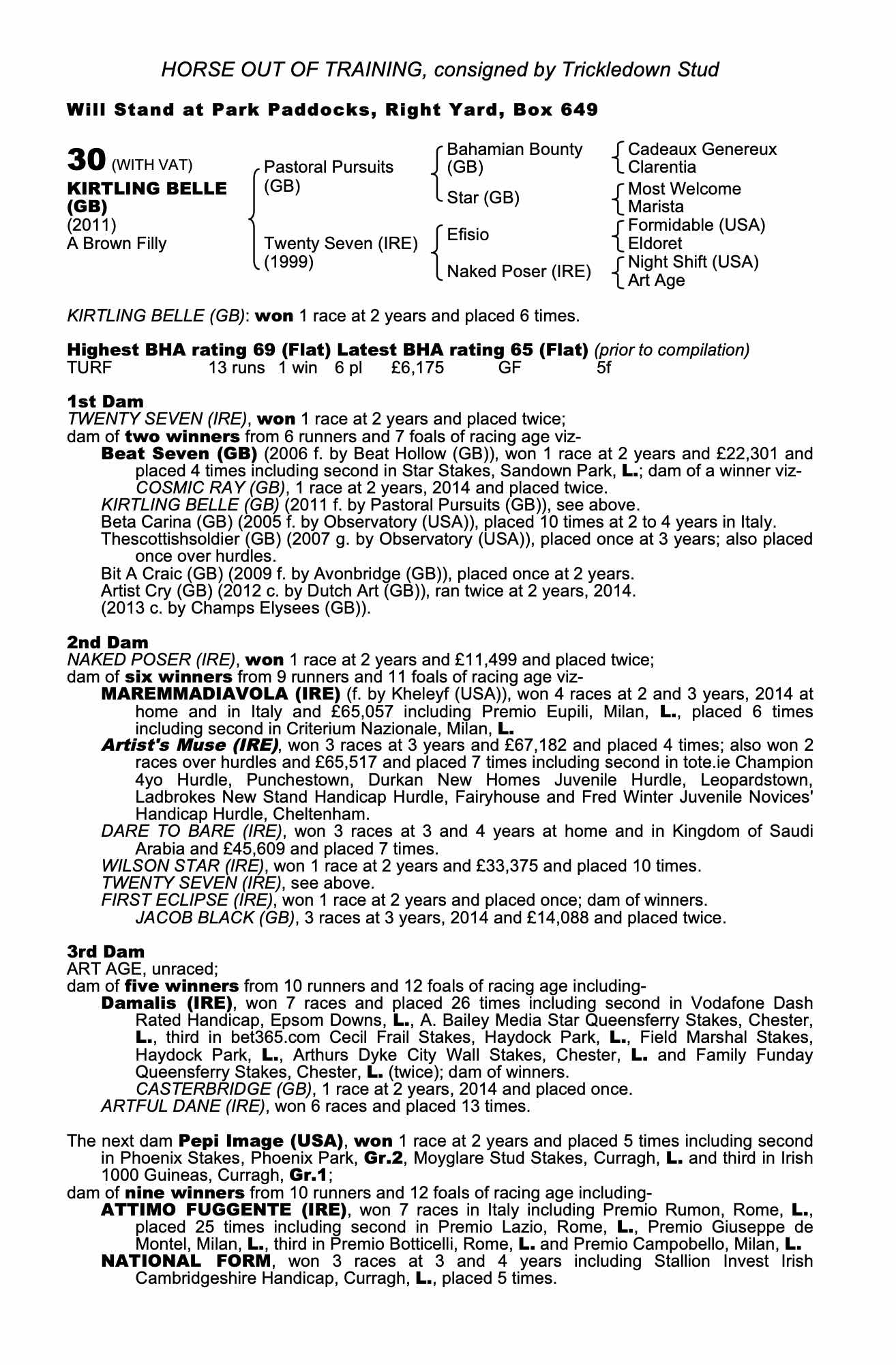Autumn Horses in Training Sale 2019 lot 109 Club Tropicana (GB) (F. by Helmet (AUS)), The National Stud Ltd.=>Valfredo Valiani 5,500 gns