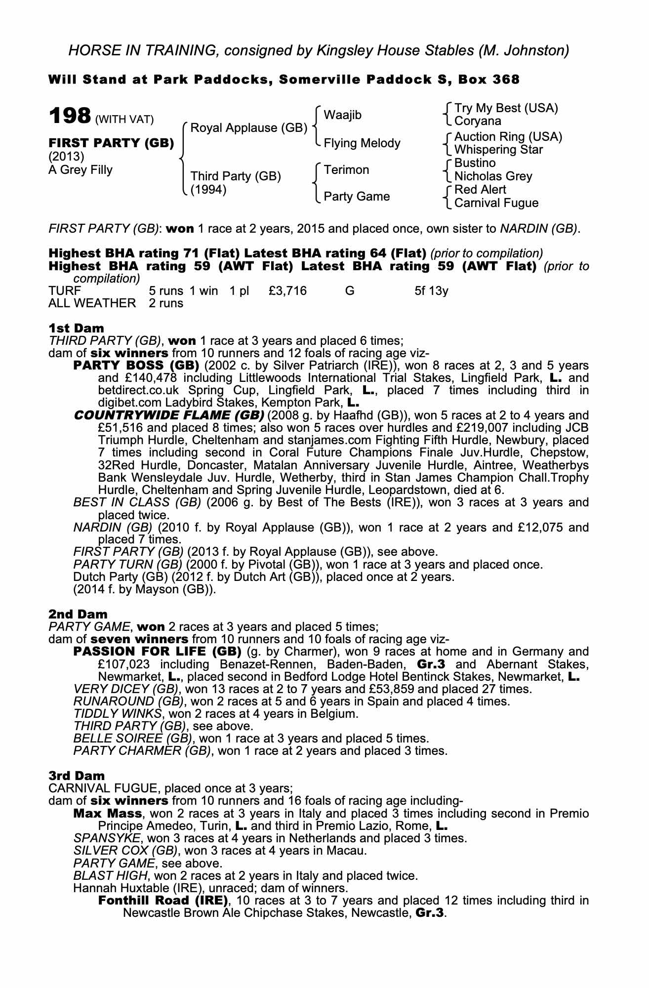 February Sale 2015 lot 218 Baileys Partytime (GB) (F. by Aqlaam (GB)), Kingsley House Stables (M. Johnston)=>Yellowford Farm 5,000 gns