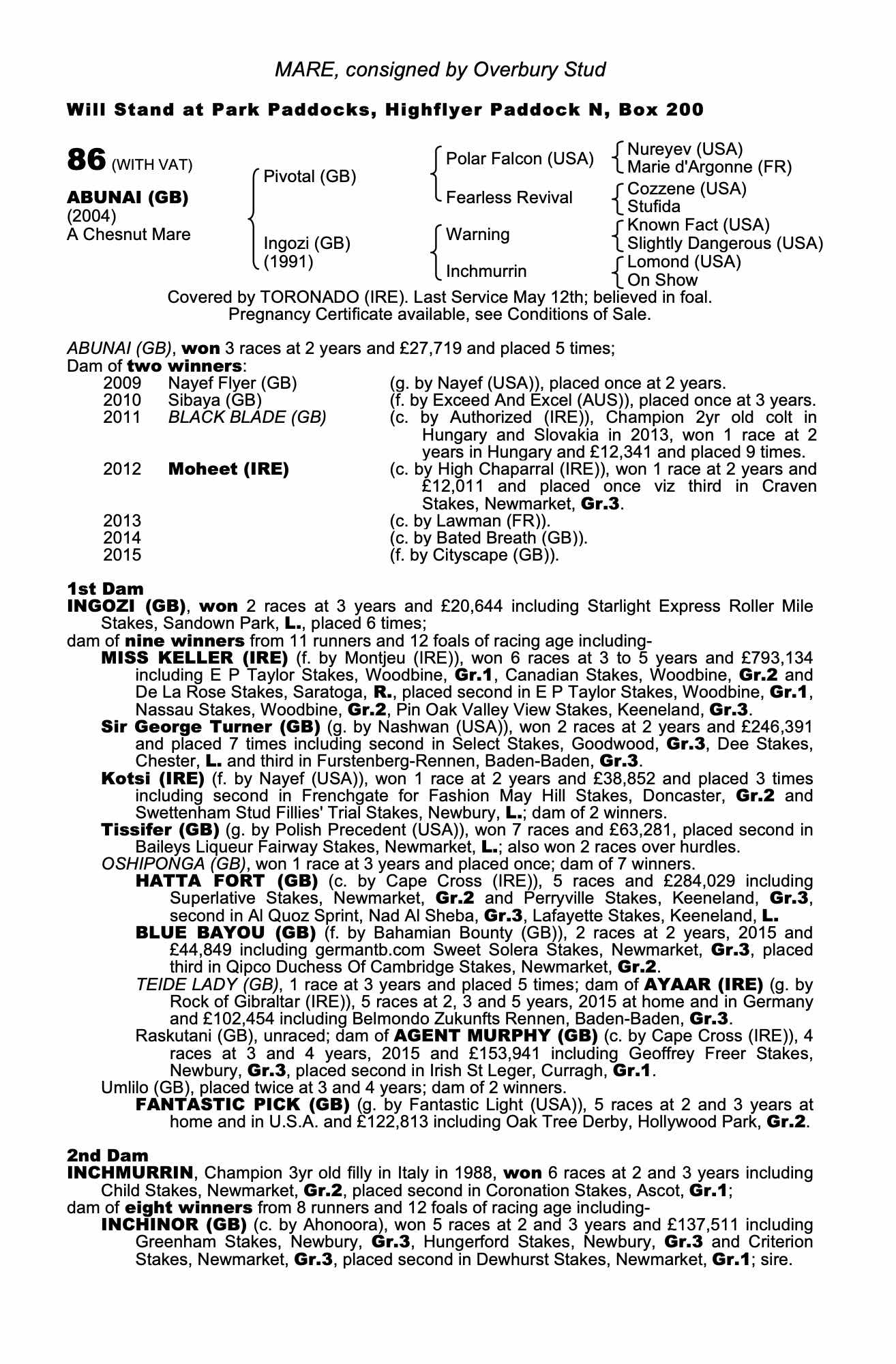 December Mare Sale 2016 lot 1398 Umlilo (GB) (M. by Mtoto), New England Stud=>Vendor 5,000 gns