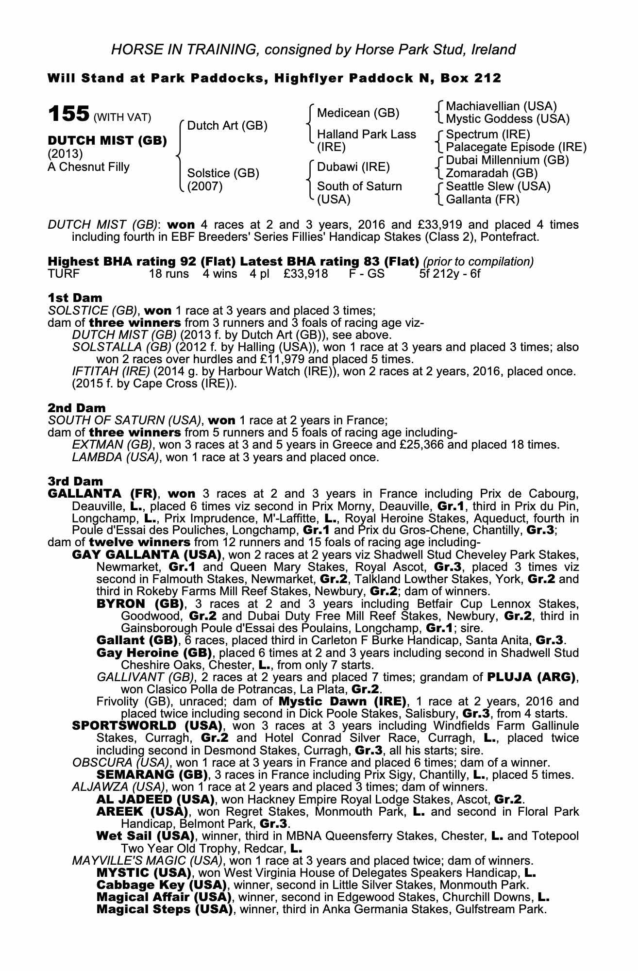 Consignor: Horse Park Stud, Ireland