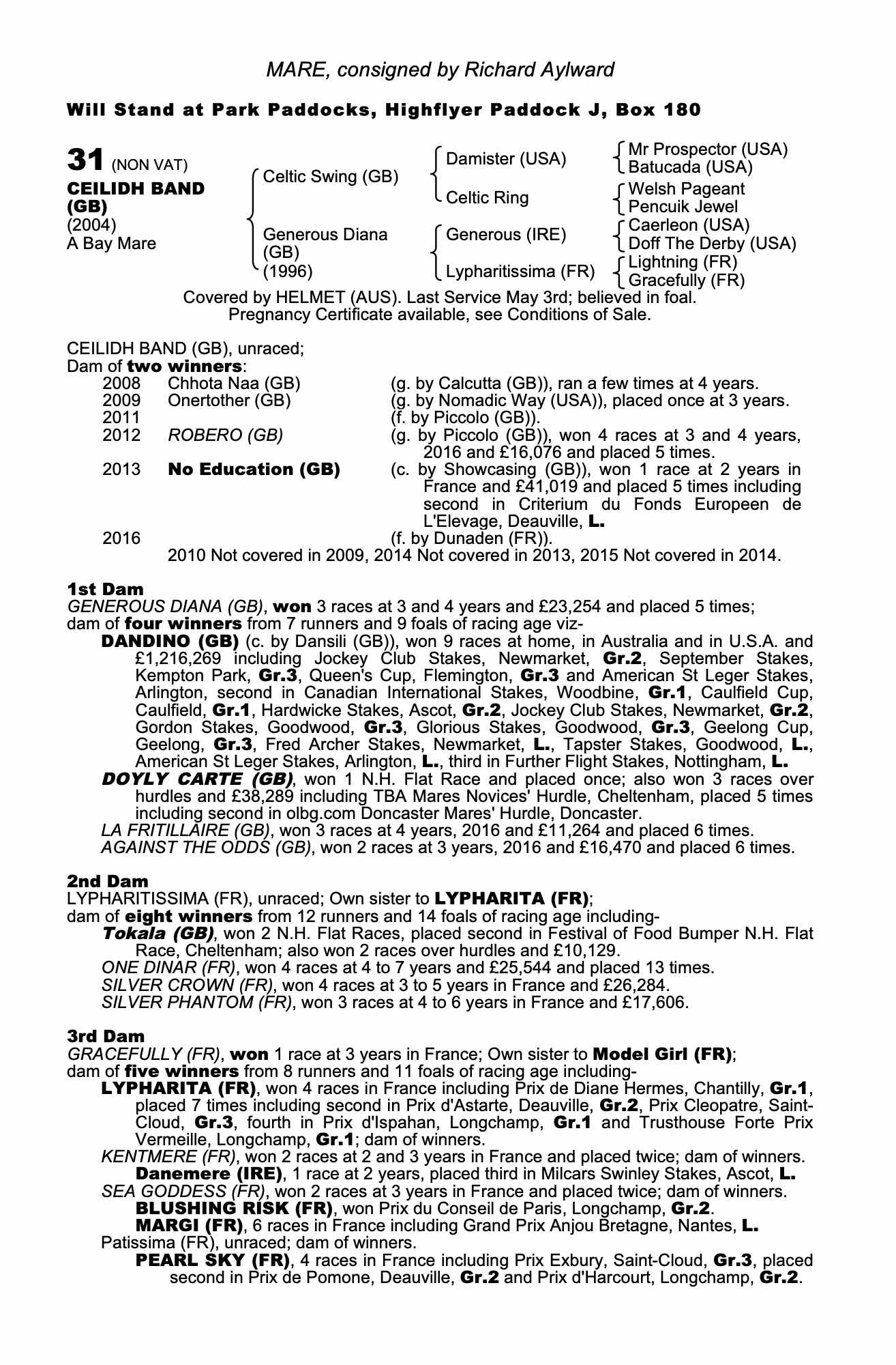 November Flat Foal & Breeding Stock Sale lot 1079, Salcey Forest Stud=>Lot Not Sold