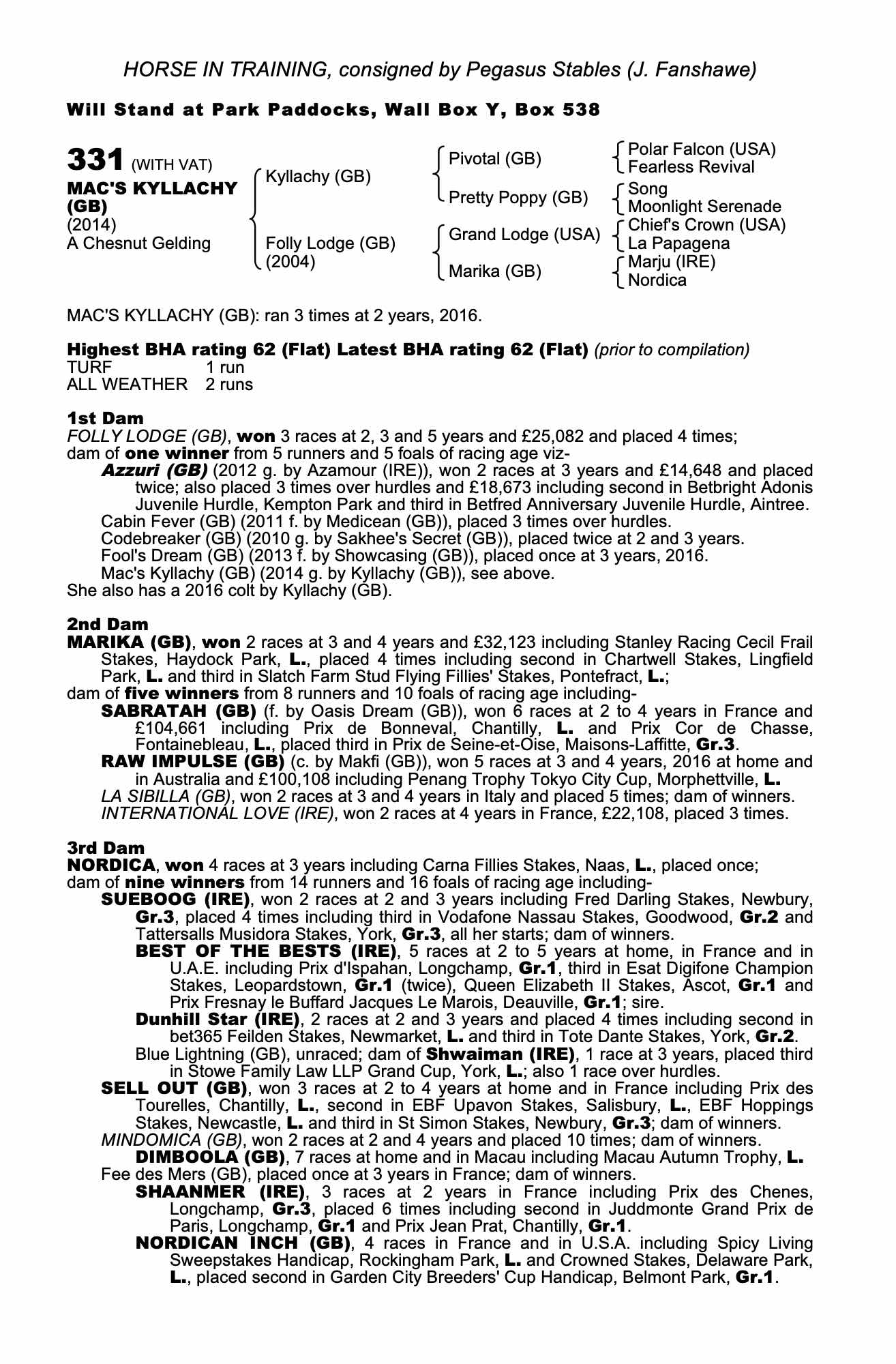 Craven Breeze Up Sale 2015 lot 57 F. by Showcasing (GB) 2013, Tally-Ho Stud, Ireland=>Vendor 15,000 gns