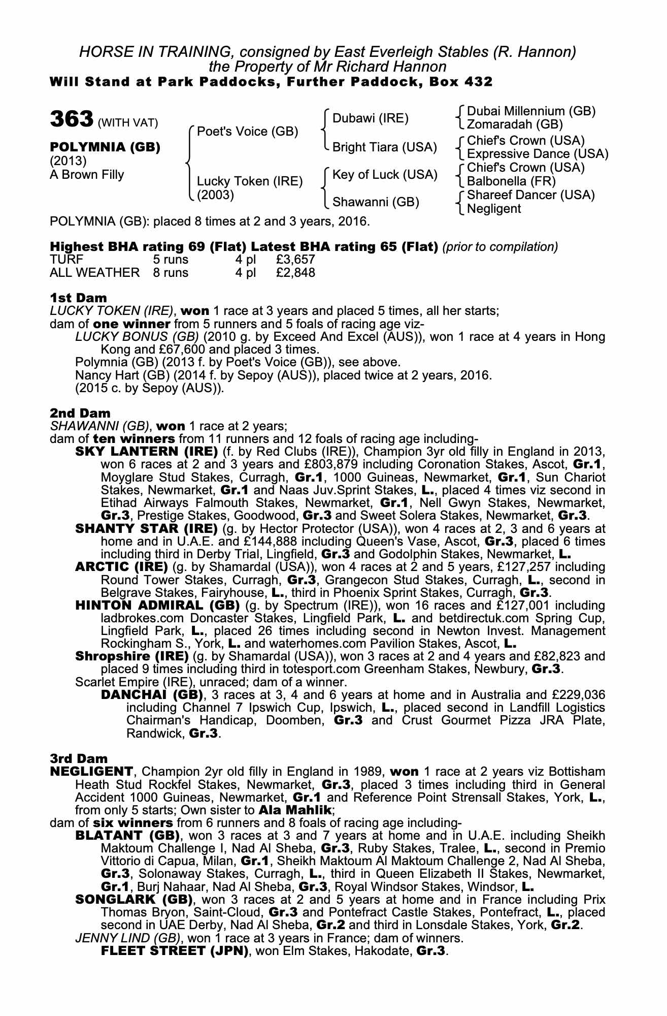 Consignor: East Everleigh Stables (R. Hannon)